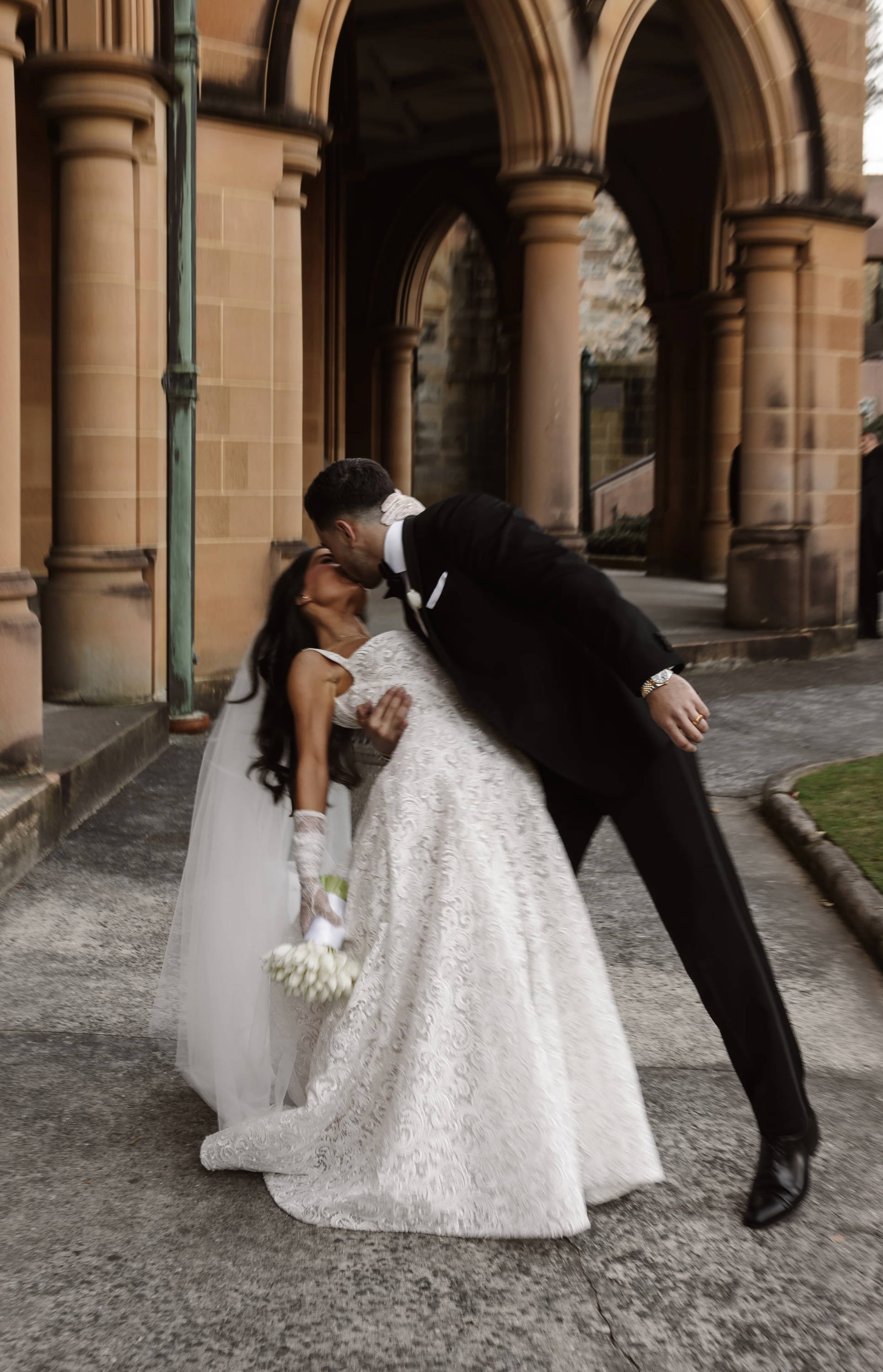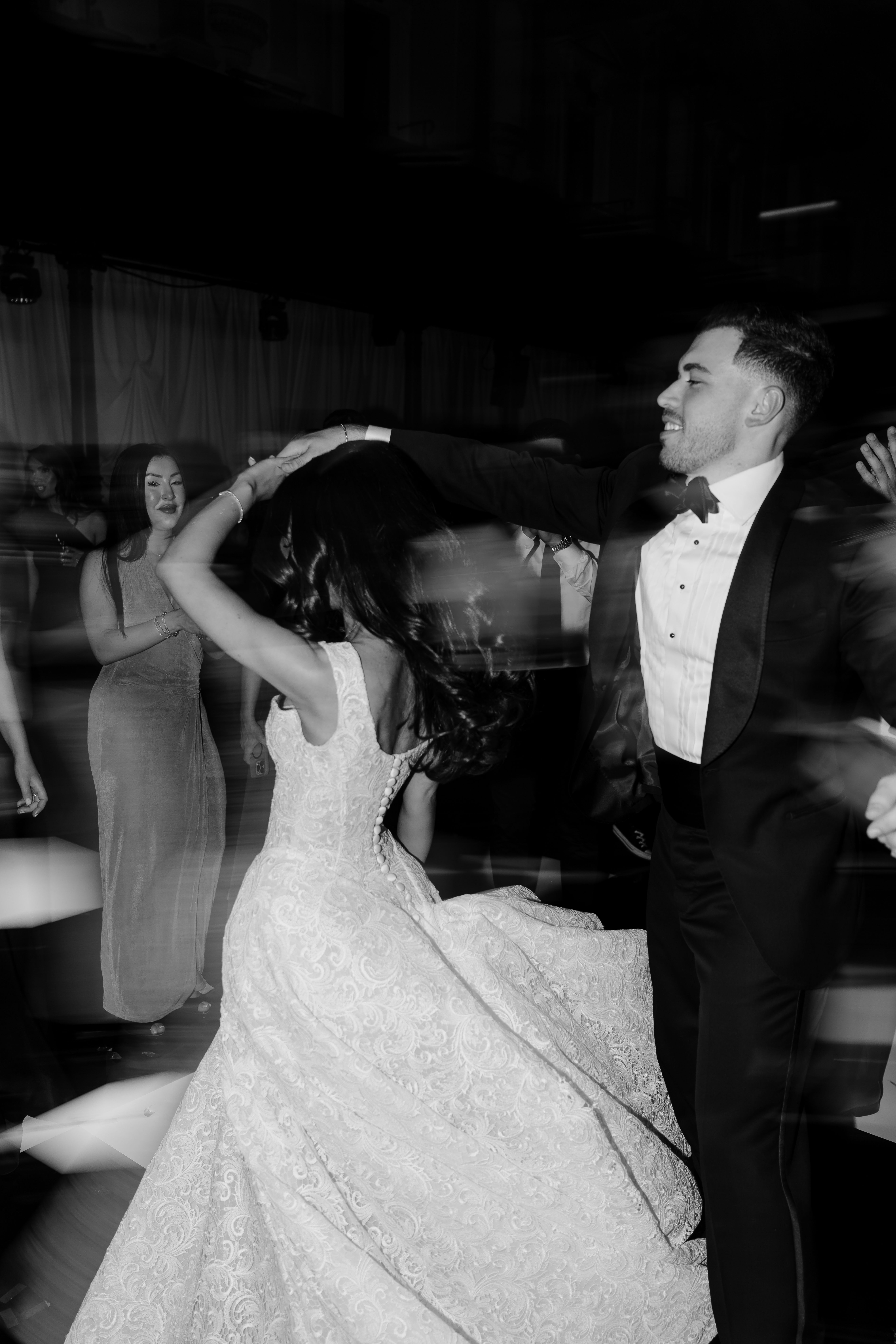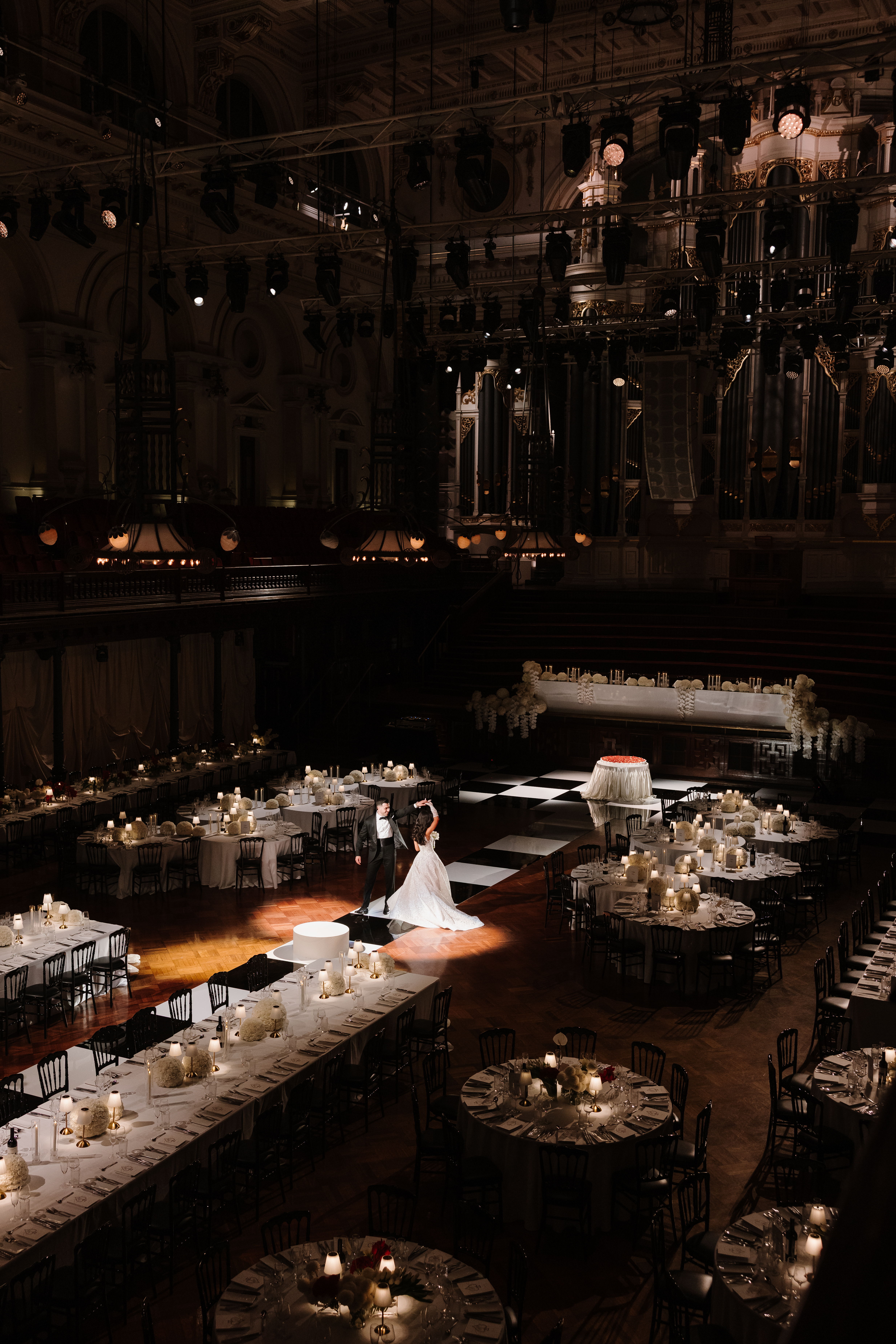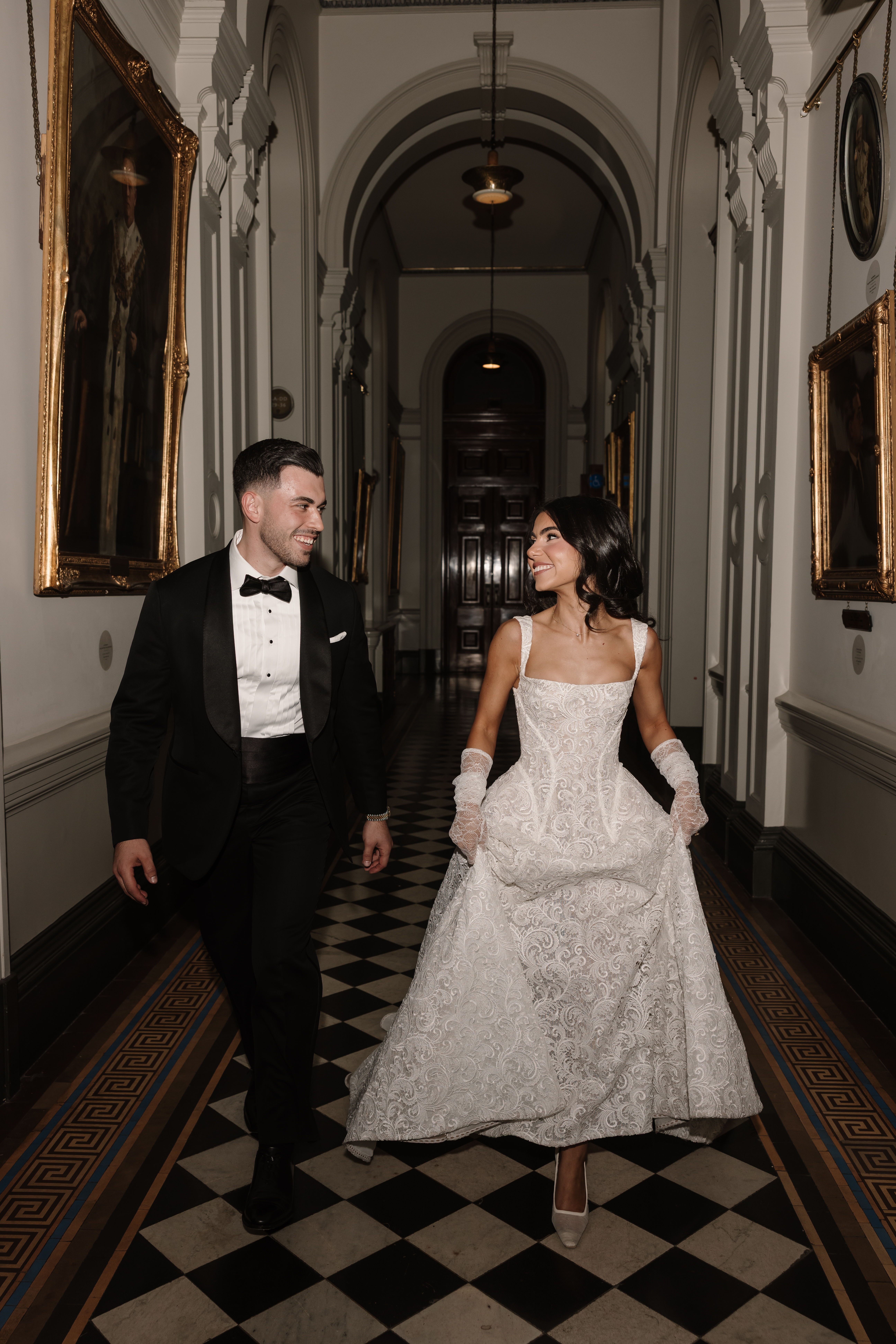 We always imagined our wedding as moody, theatrical, regal, and elegant, something layered with intention. Pinterest became our main source of inspiration, helping us refine the look and feel we wanted. Working with our planner, Viviene from FÖLA Styling, brought everything into focus; she understood our vision instantly and translated it into something cohesive and beautiful. Early on, Michael and I even sketched a rough floor plan with checkered floors, draping, and long king tables. Seeing those details come to life on the night felt surreal, exactly like the wedding we’d pictured from the very beginning.