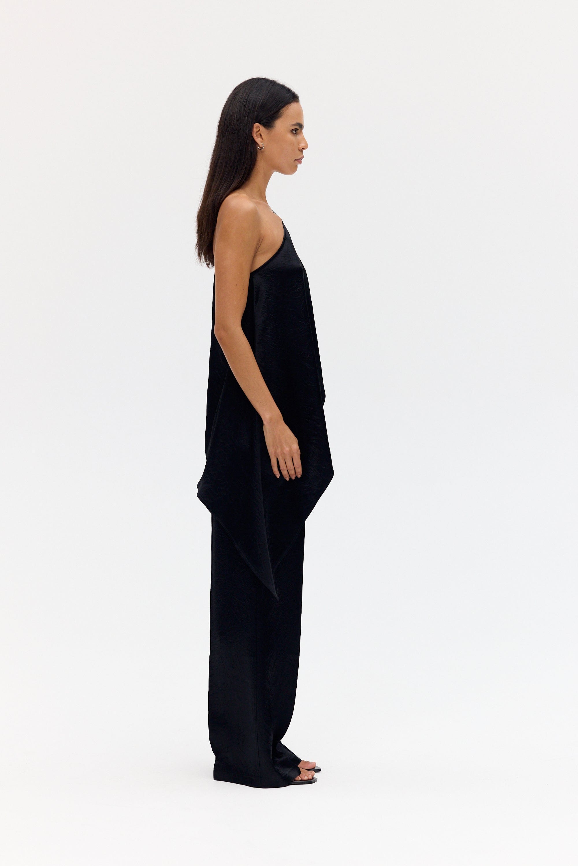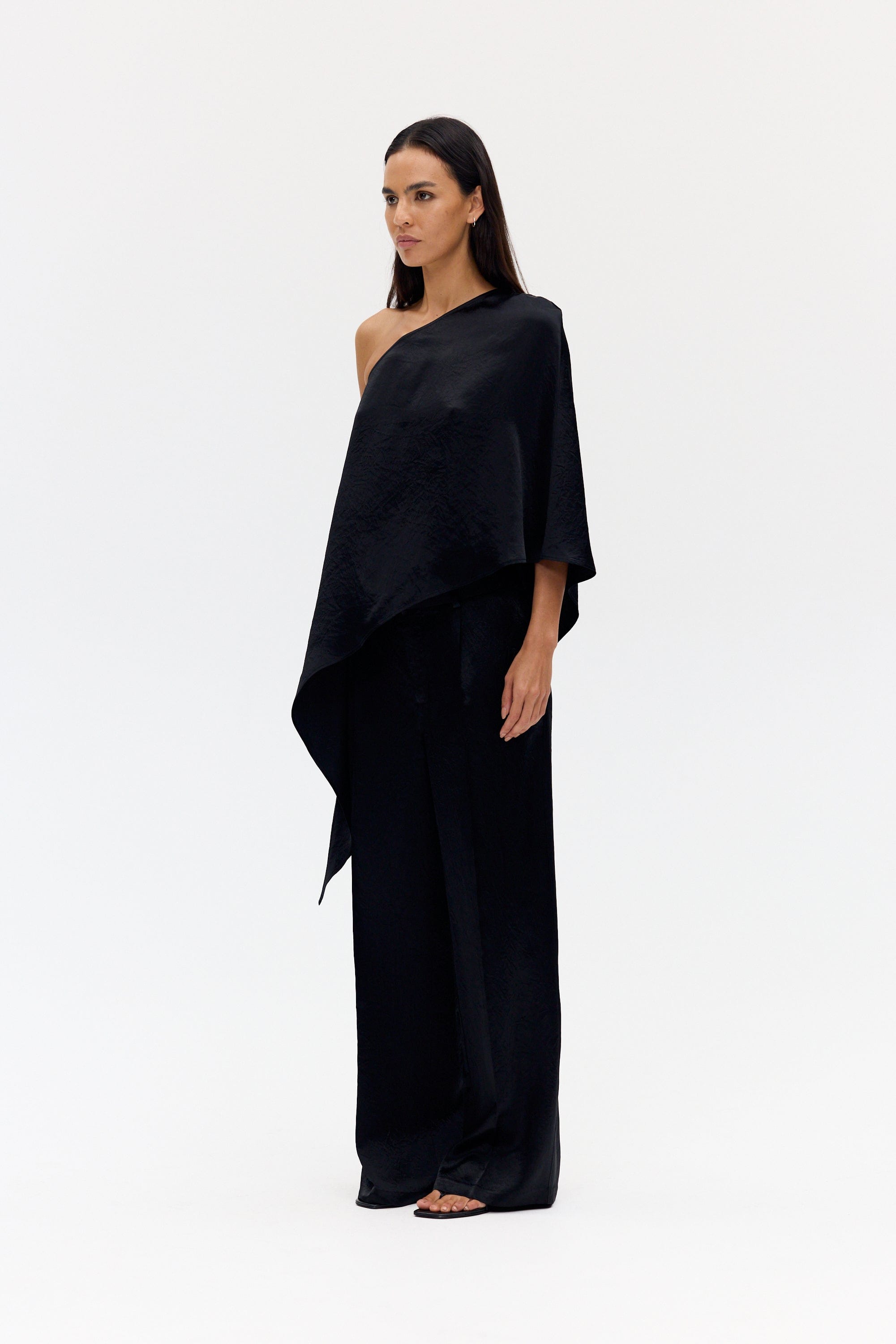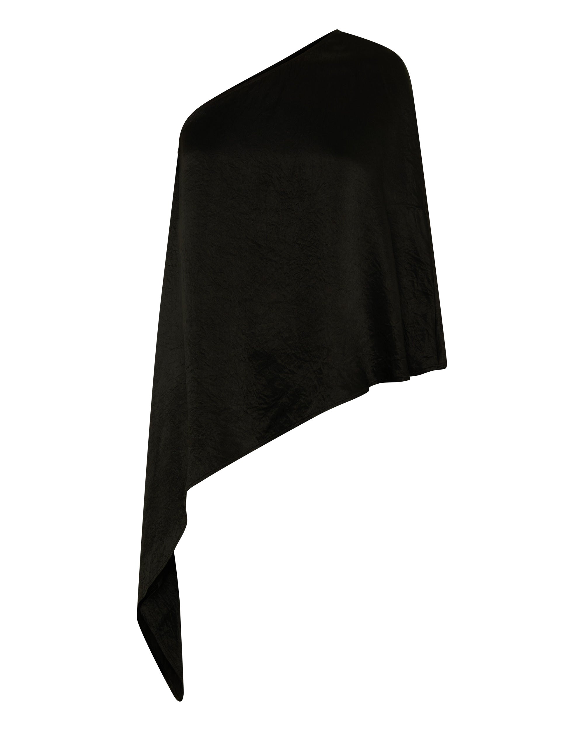 The Crush One-Shoulder Cape is a relaxed take on elevated dressing. Designed with a fluid drape, the asymmetric silhouette falls effortlessly from one shoulder to an elongated hemline. Crafted in 100% sustainable acetate, this cape top offers ease of wear with a striking, modern edge.