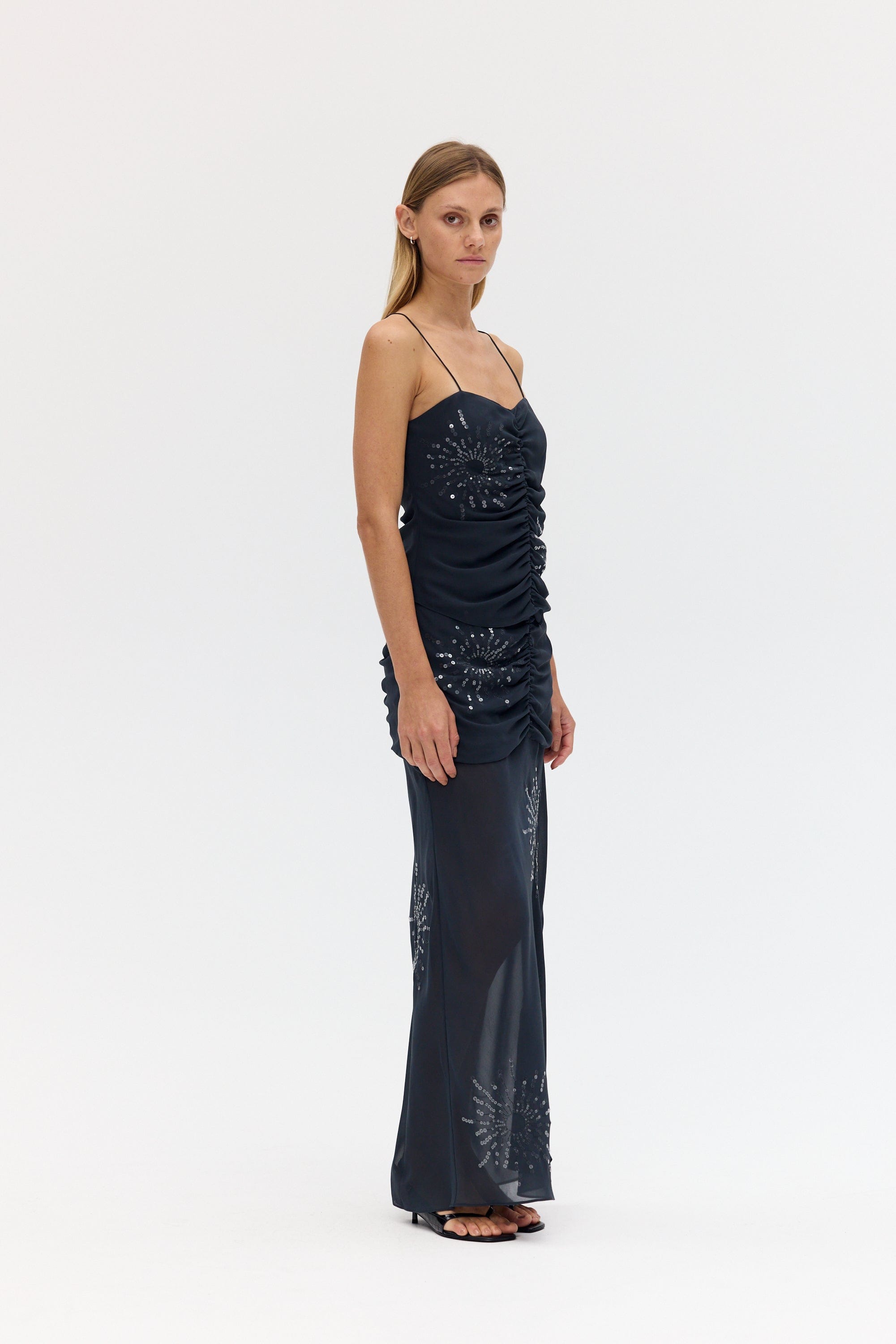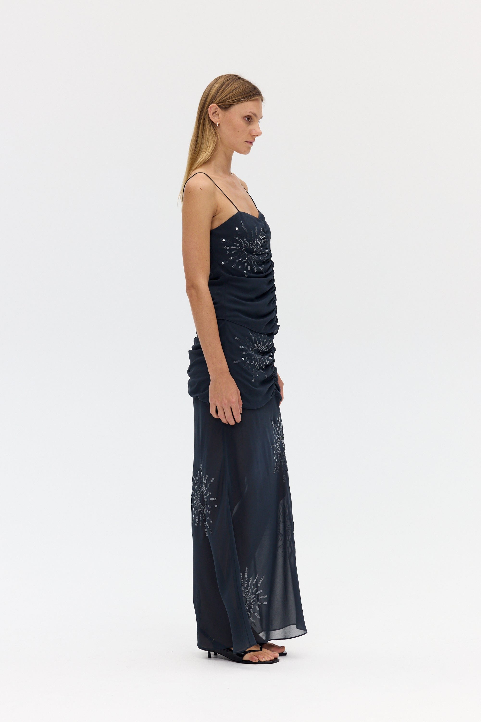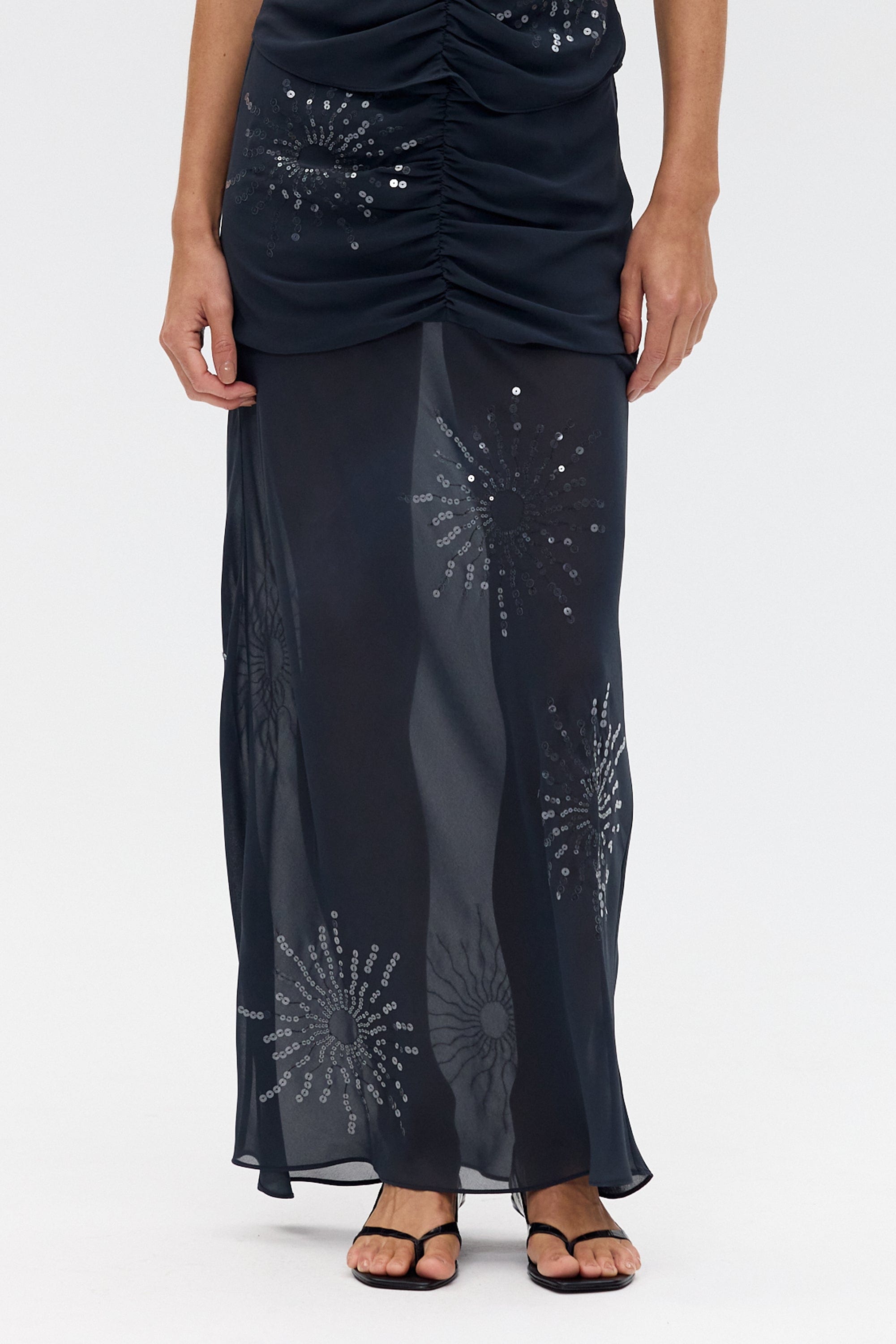 FLICKER BIAS MAXI SKIRT | SMOKE