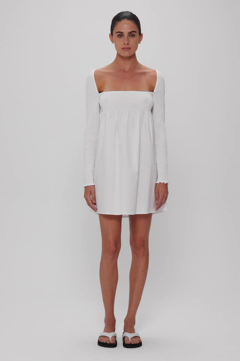 • FULL FORM SHIRRED BABYDOLL DRESS | OFF WHITE