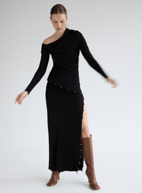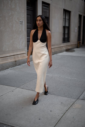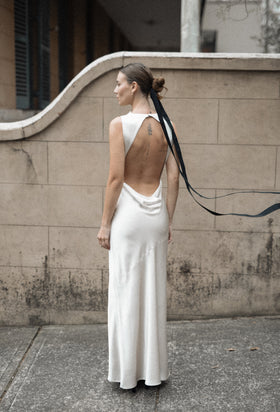 • SATIN BIAS COWL BACK MAXI | BLACK