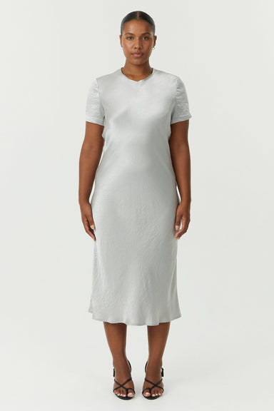 • STIRLING TWIST CROSS OVER MIDI DRESS | OYSTER GREY