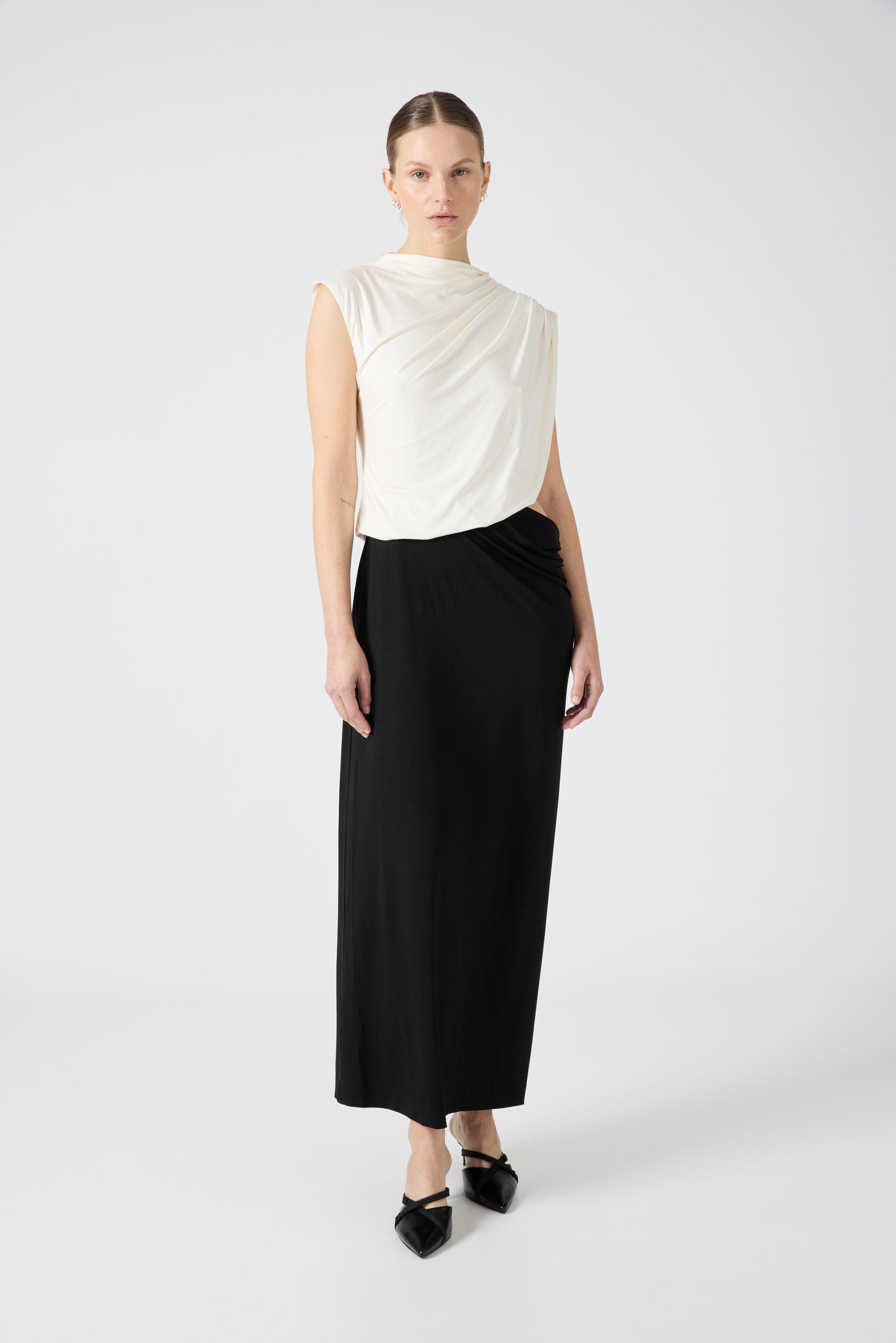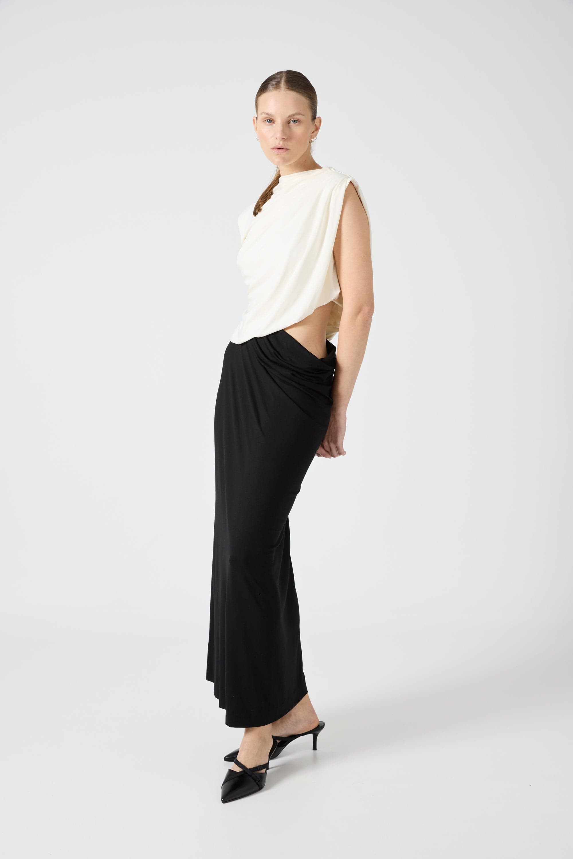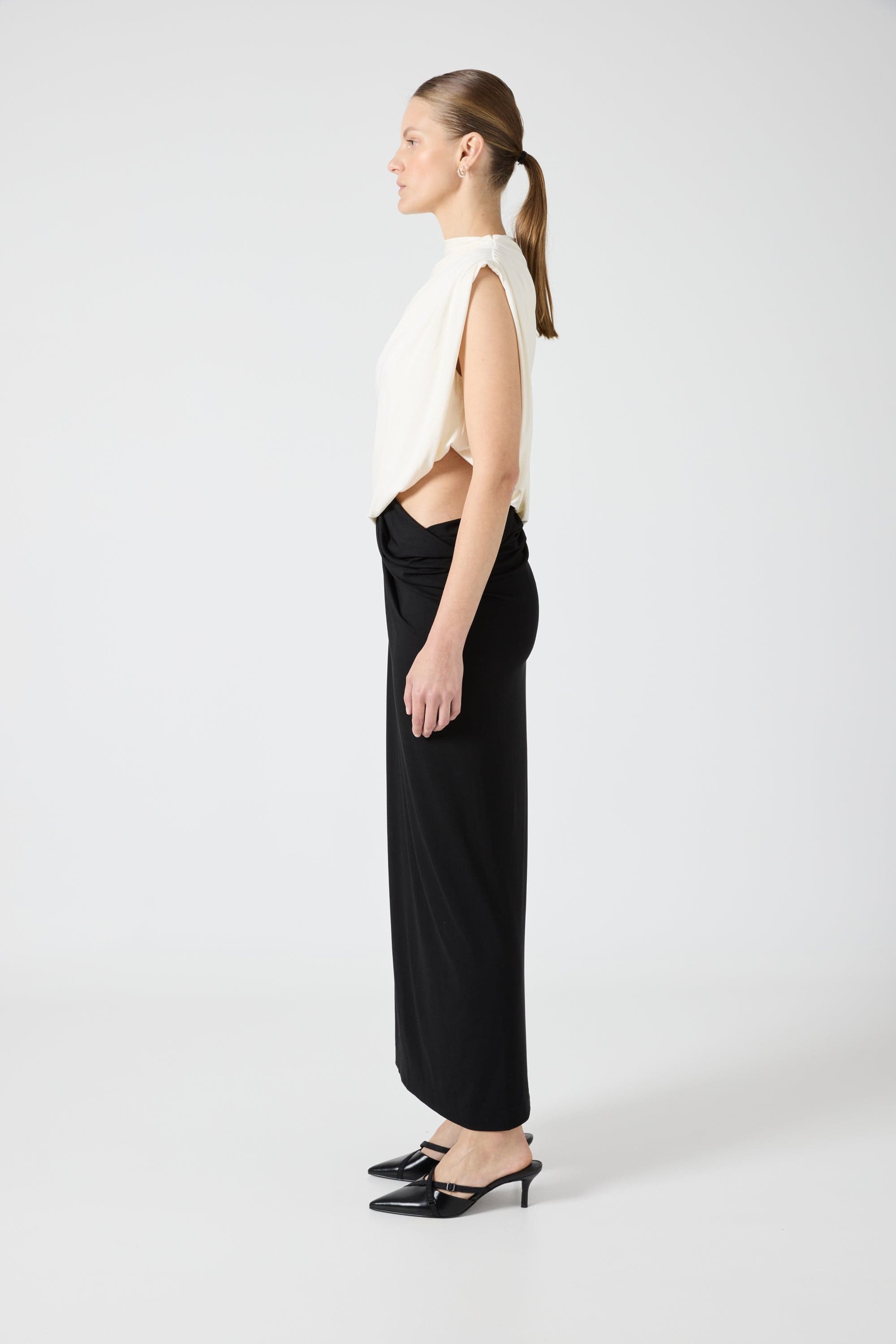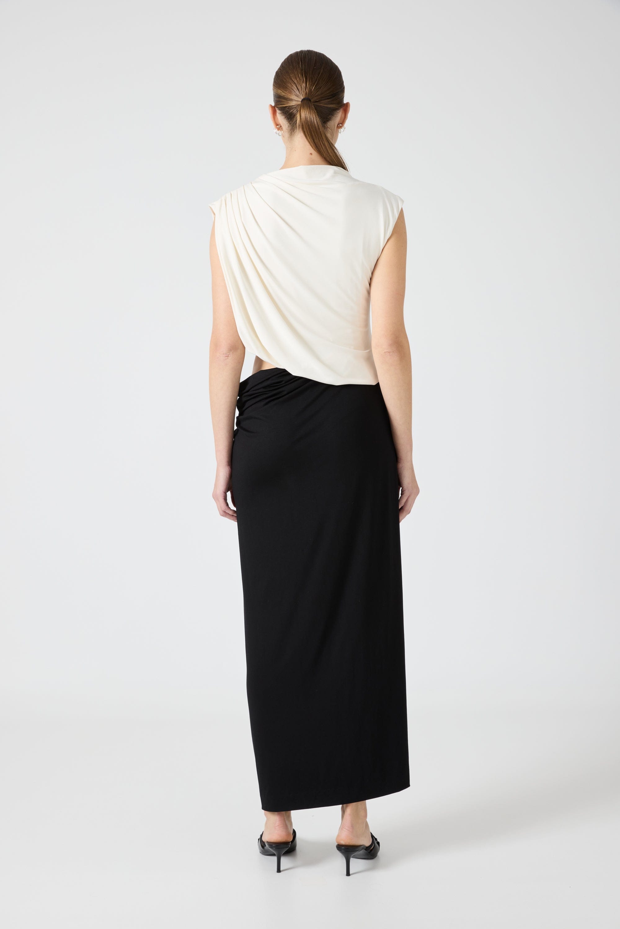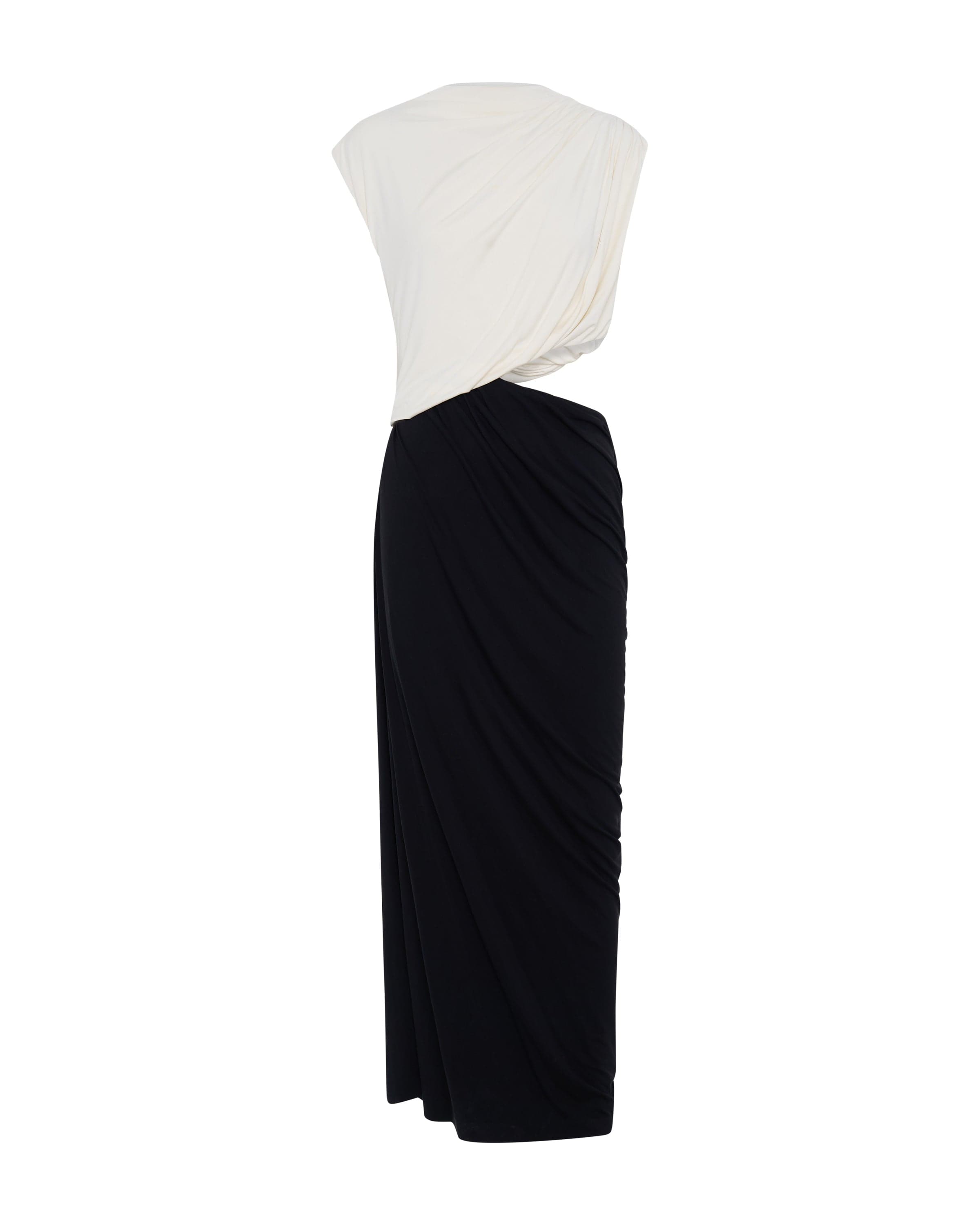 CASCADE CUTOUT JERSEY DRESS | CREAM/BLACK
