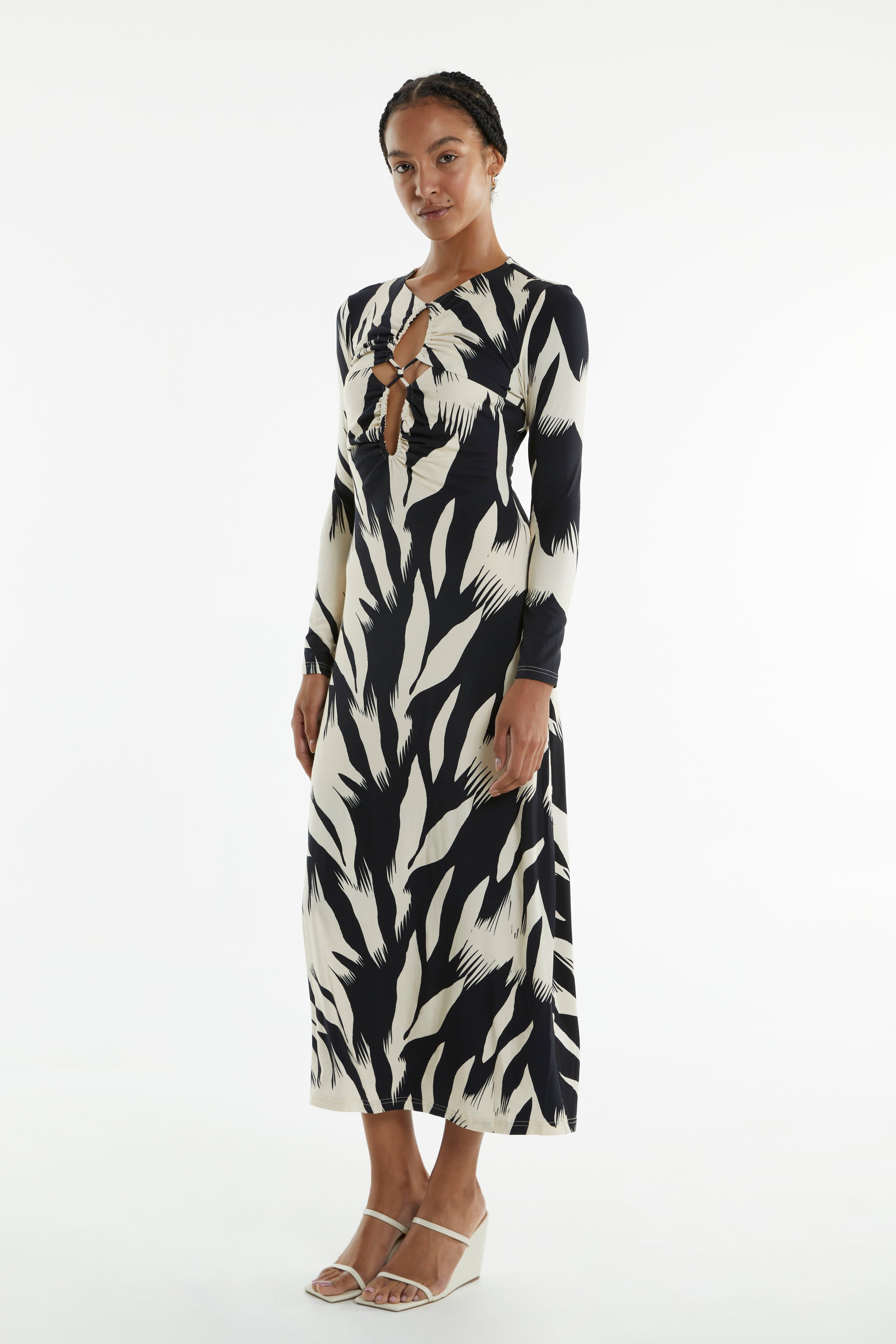 DRIFTER LS MIDI DRESS | FEATHER PRINT