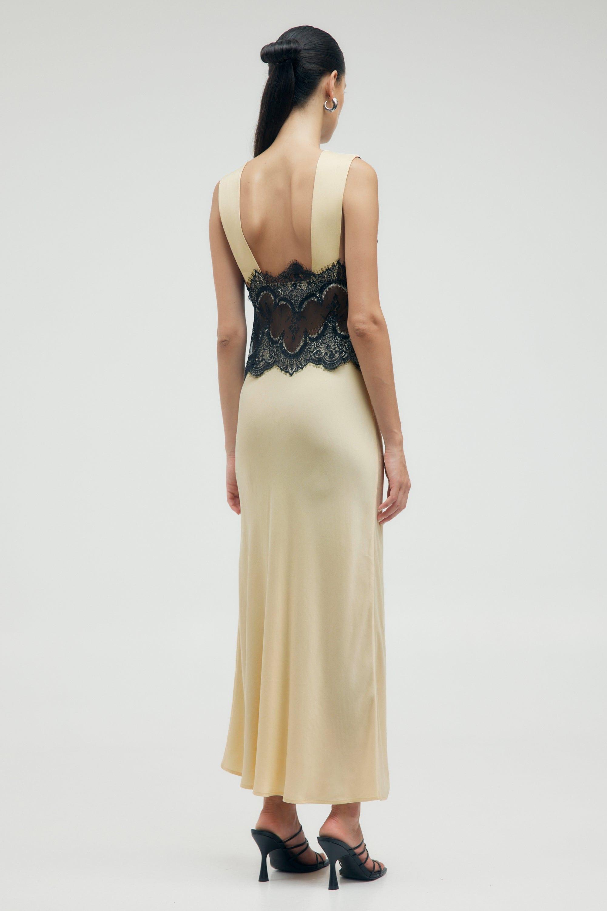 VISIONS LACE DEEP V MAXI DRESS | MARSHMALLOW