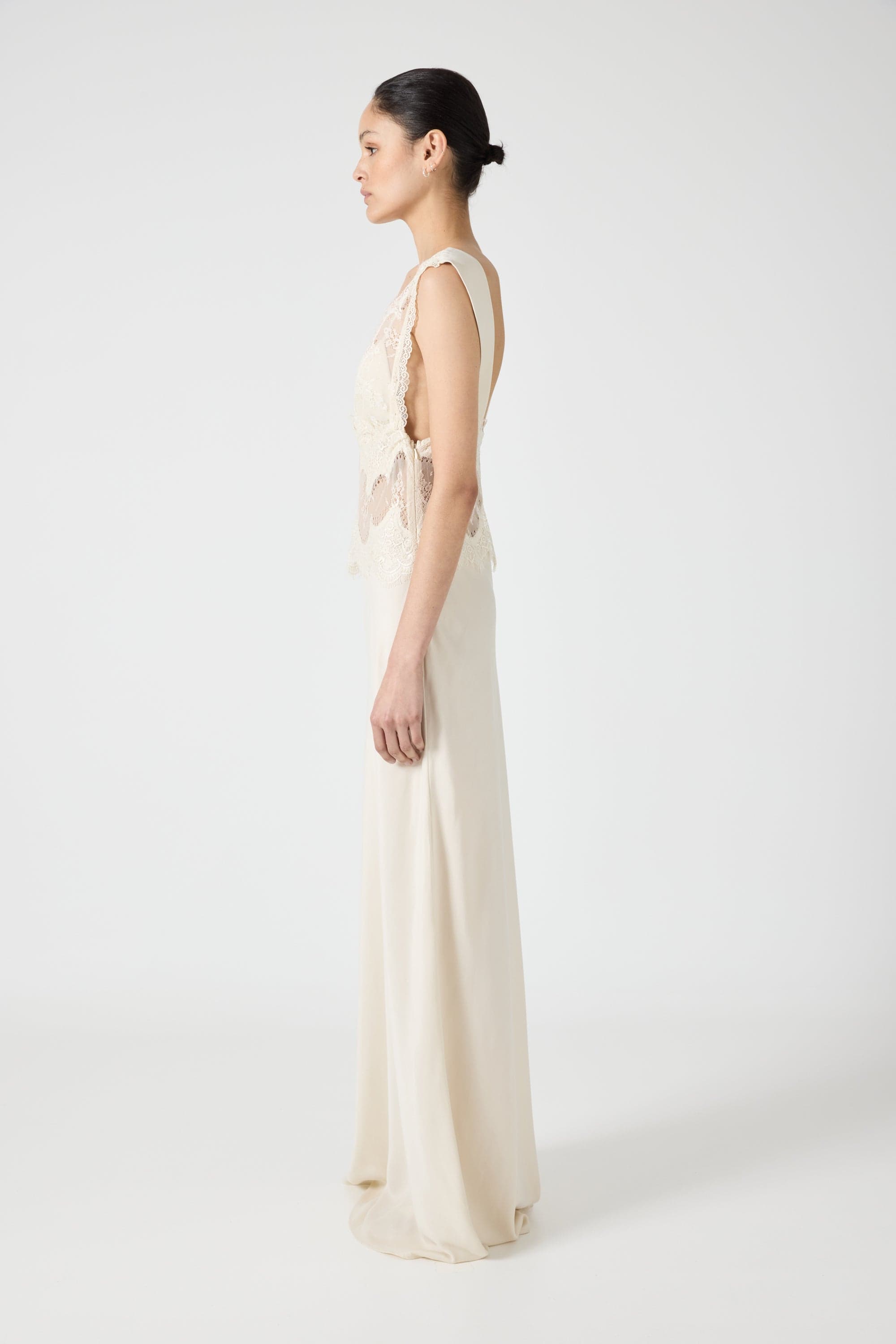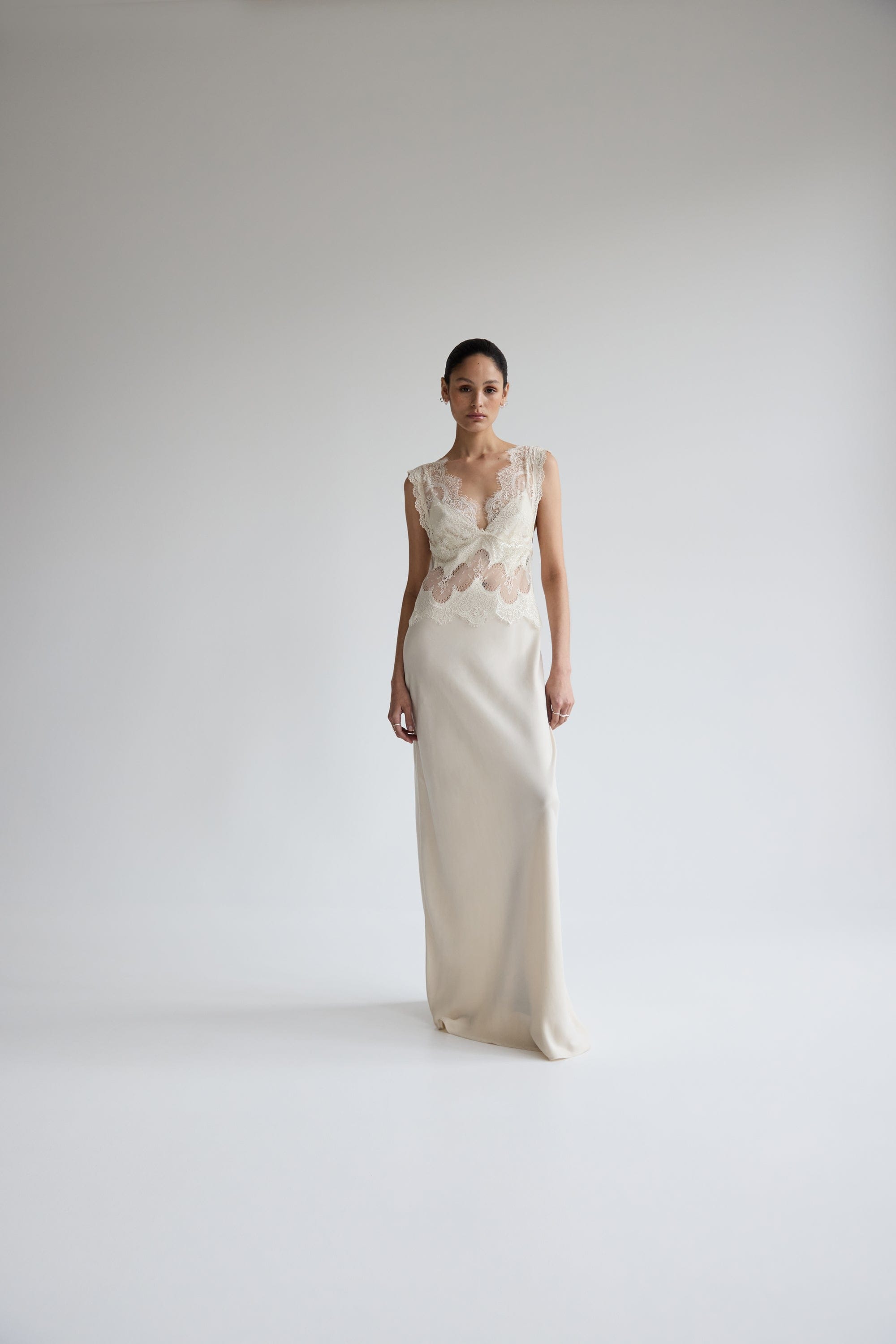 • CRUSH WRAP NECK FLOOR LENGTH | CREAM