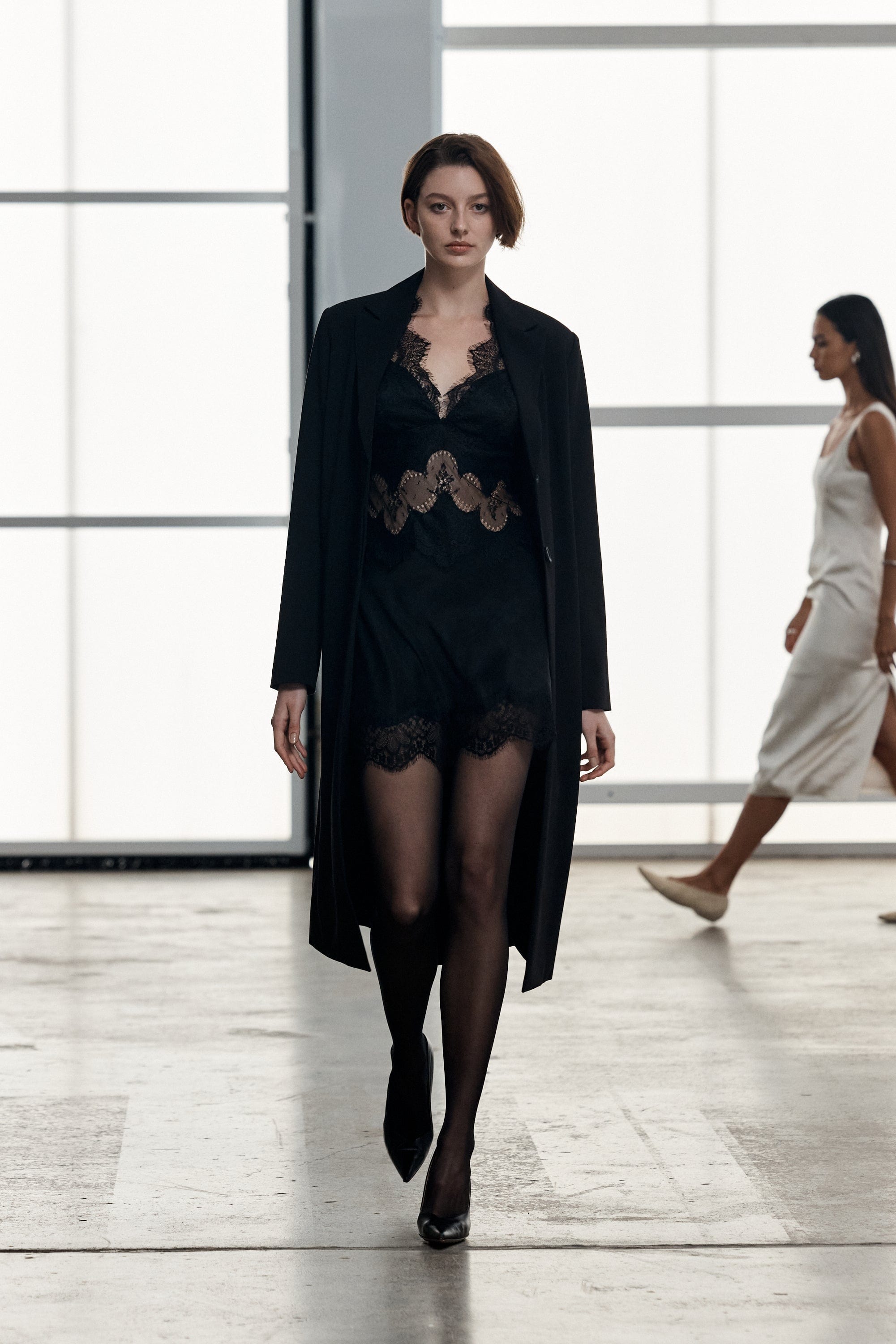 The Visions Lace Mini Dress is crafted from a premium sandwashed Cupro, cut on the bias for a fluid drape and natural movement. Delicate lace traces the bodice, creating a striking interplay of sheerness and texture, while the silhouette falls effortlessly to skim the body.