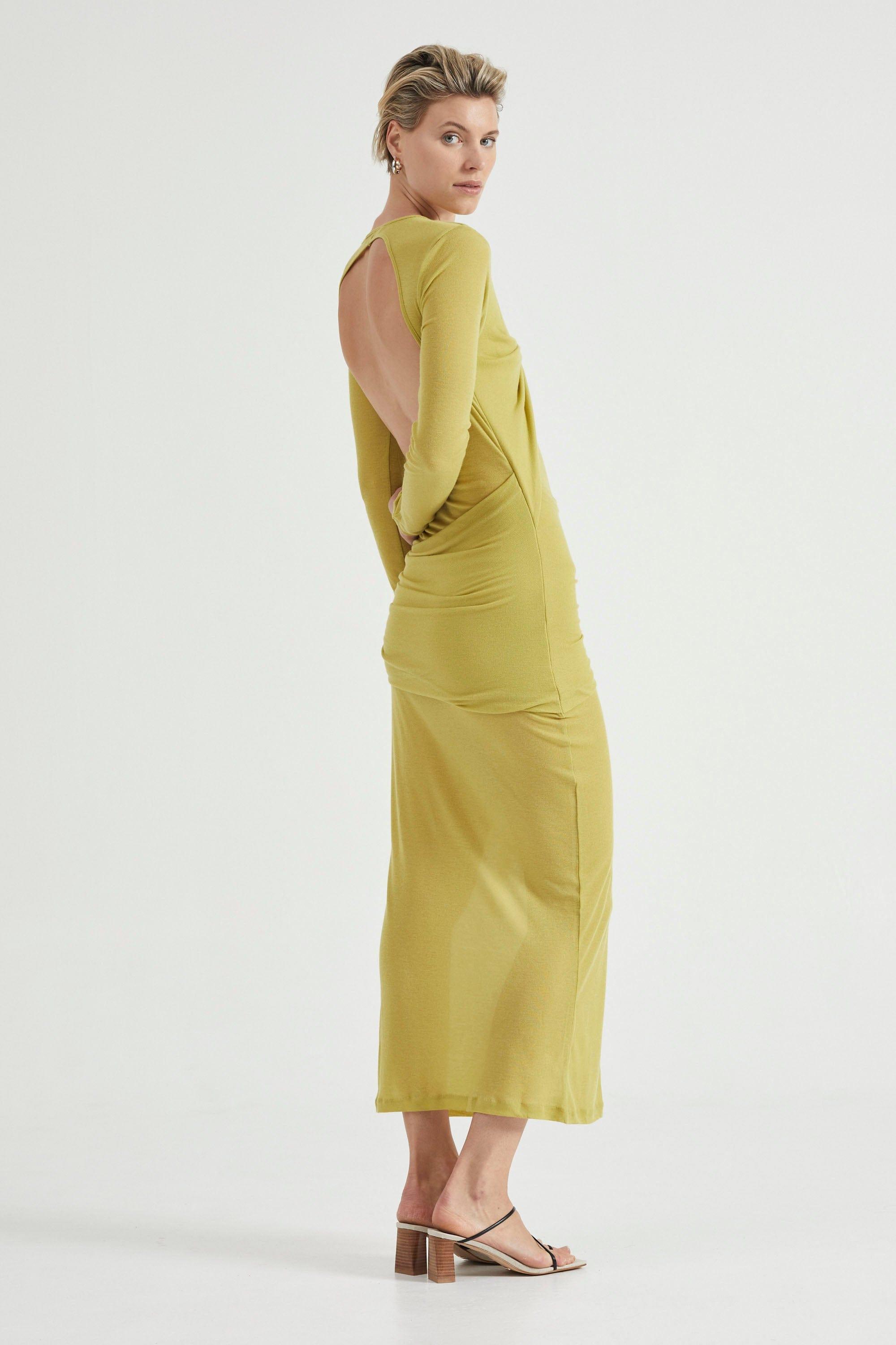 In a zesty-inspired Lime hue, the Wind Through Back Out Maxi is beautifully designed to accentuate the wearer's curves, featuring unique layering through the bust and waistline. This exquisite piece is meticulously crafted from high-quality, lightweight rayon, ensuring both comfort and a flattering fit. With its elegant long sleeves and alluring back-out design, this maxi dress is a versatile silhouette suitable for day-to-night events.