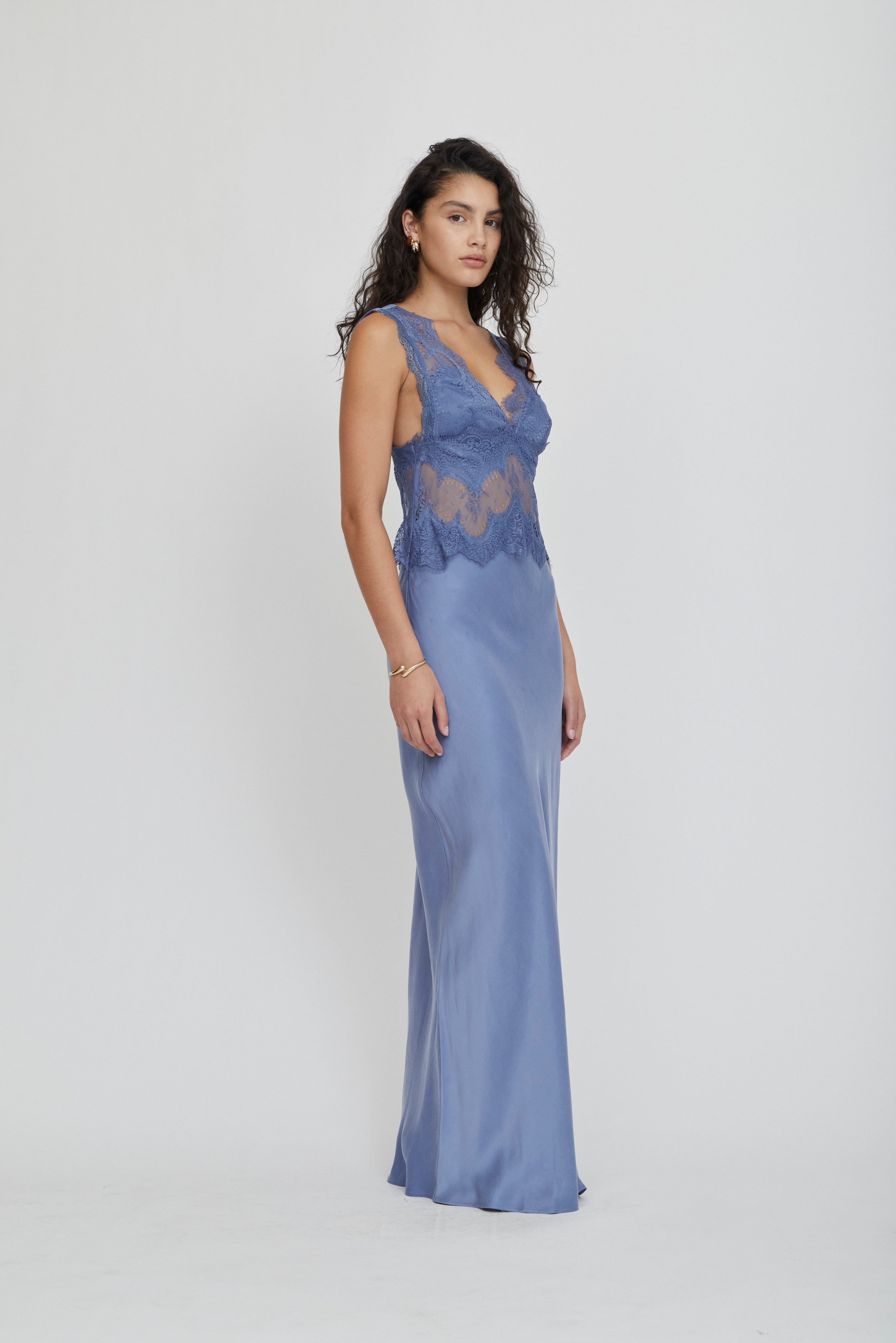 VISIONS LACE FLOOR LENGTH DRESS | SLATE