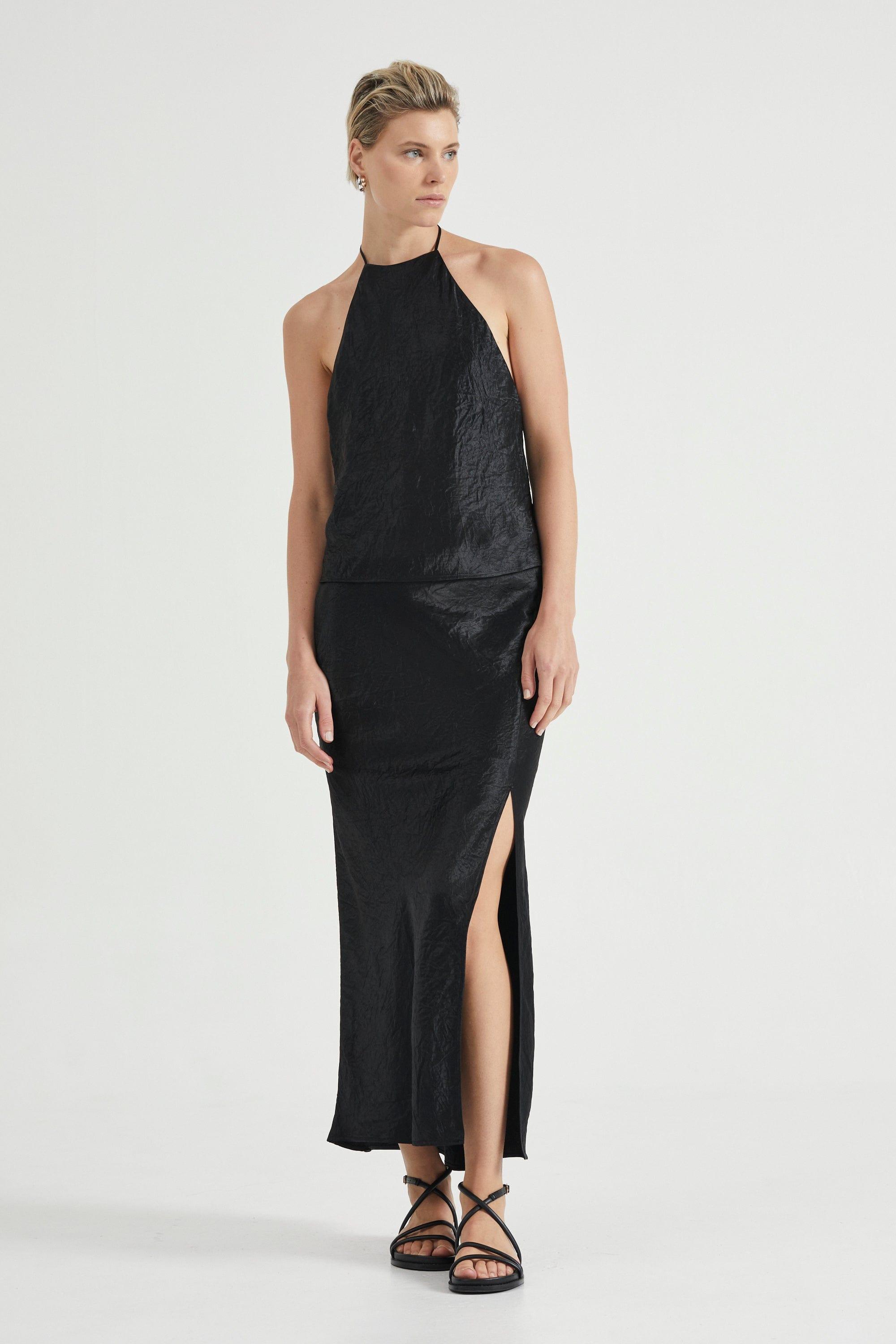 • CRUSH BIAS HALTER DRESS | BLACK