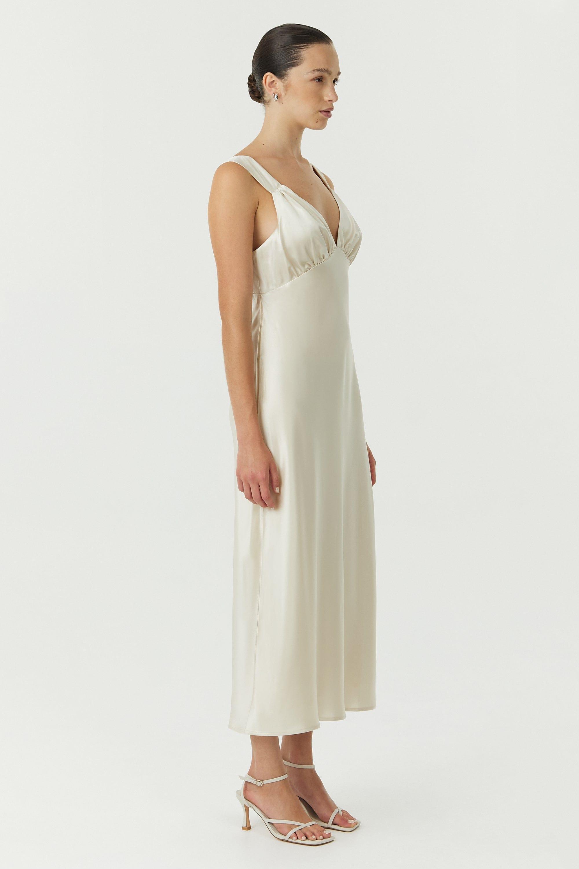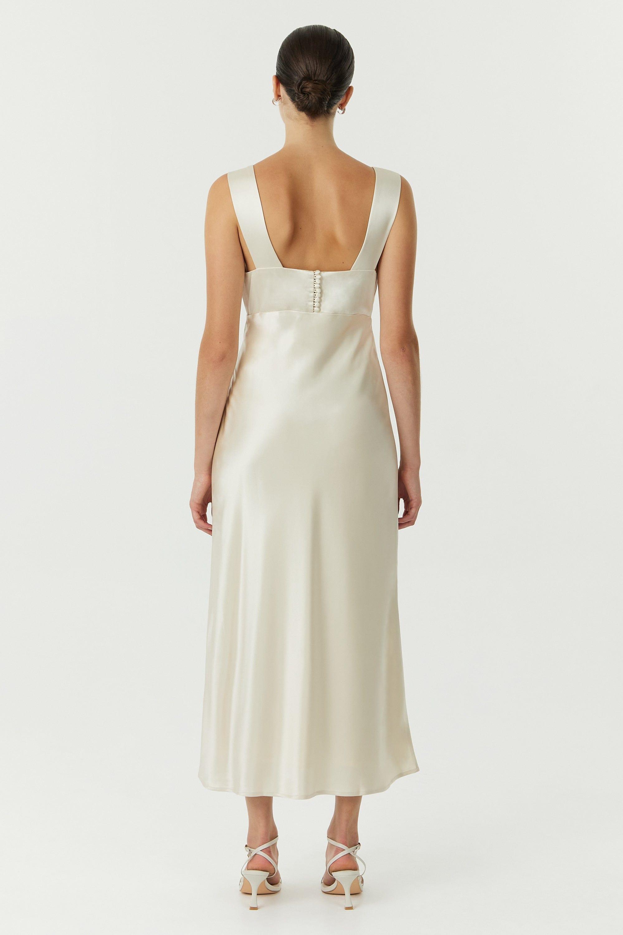 • SATIN BIAS COWL BACK MAXI | BUTTERCREAM