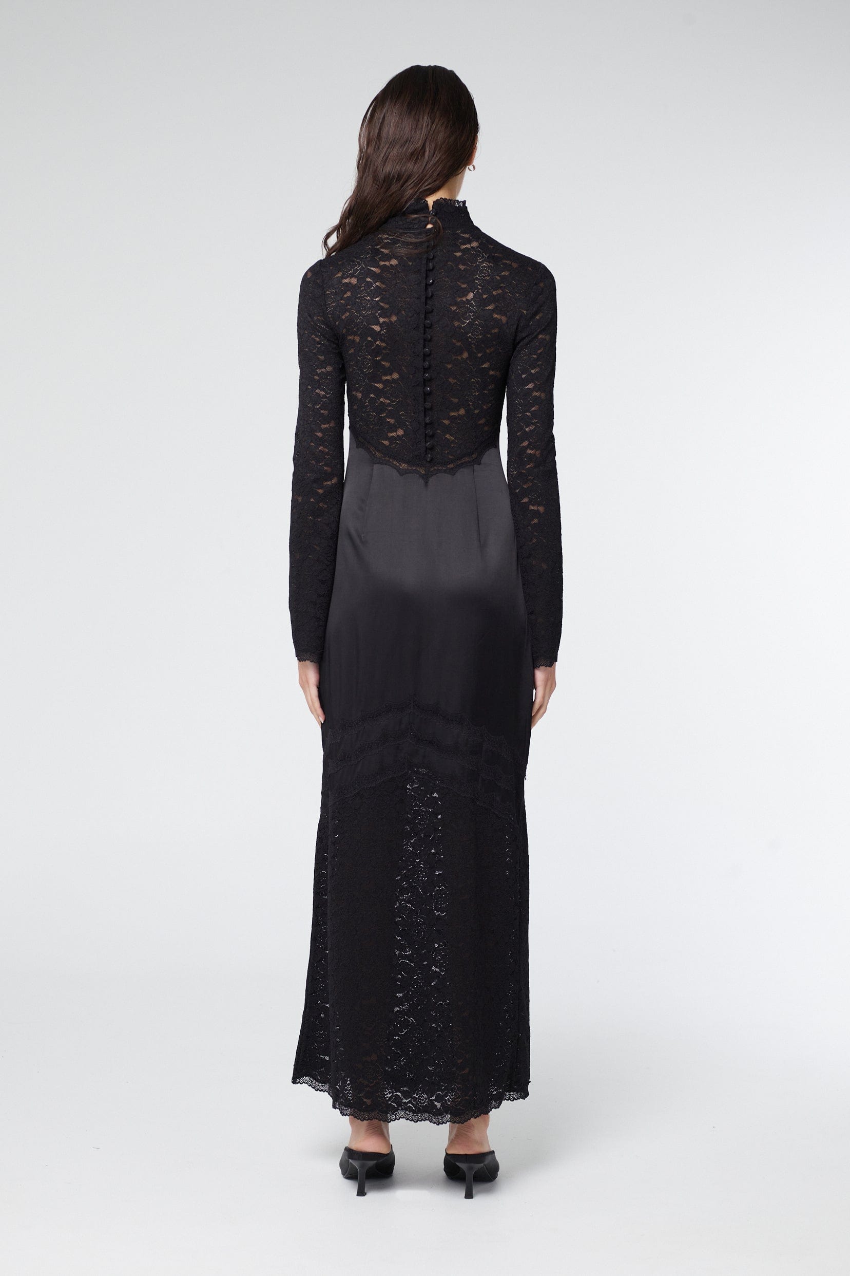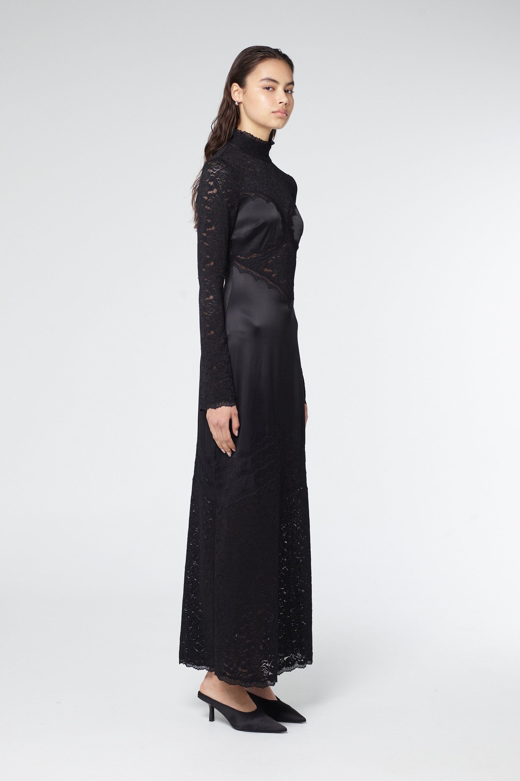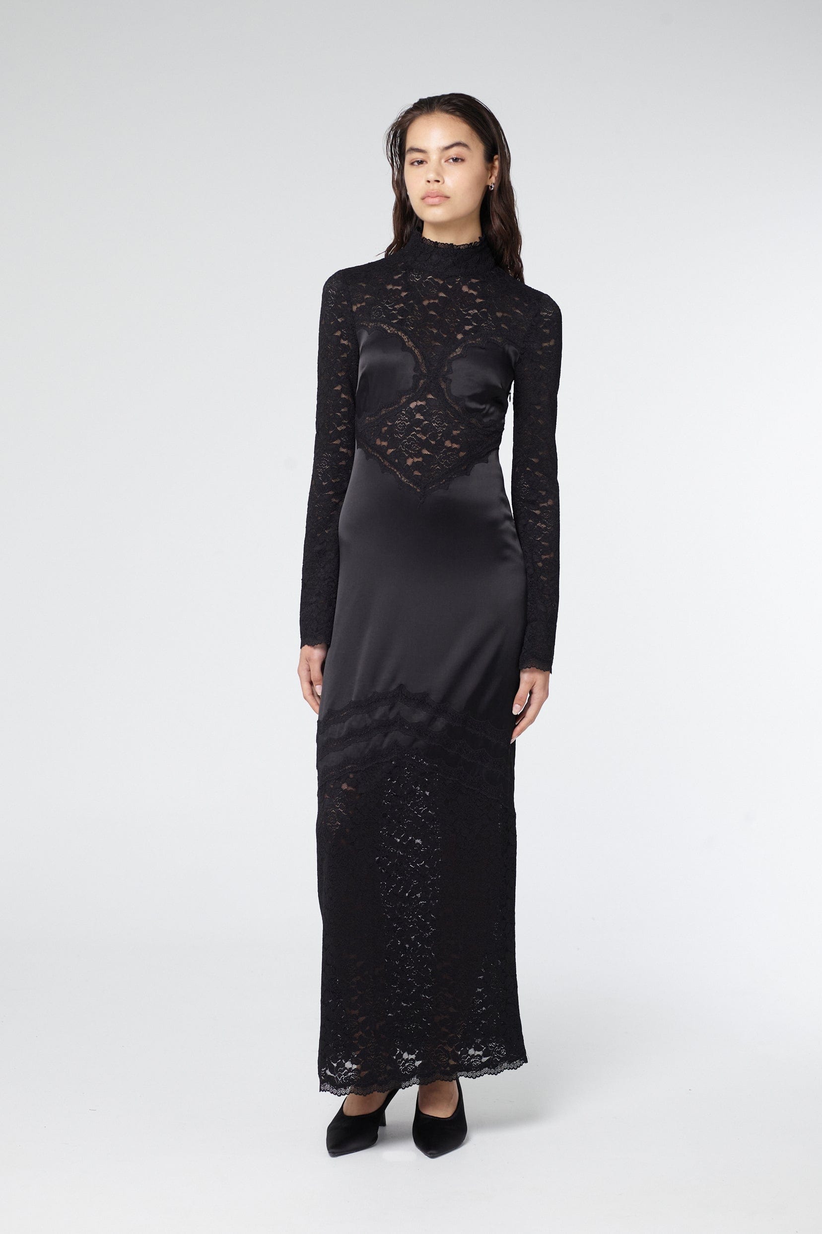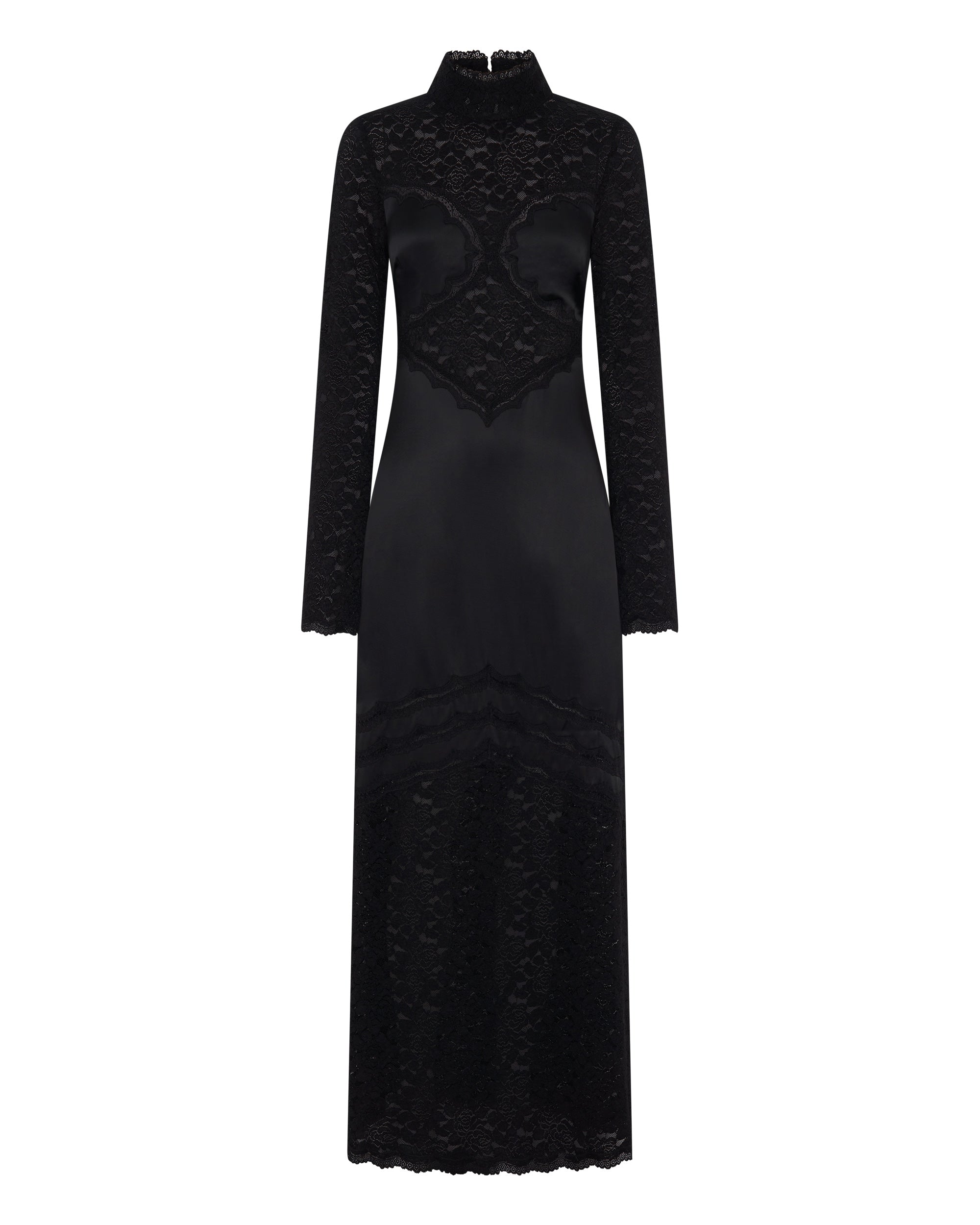SERENADE LACE LONG SLEEVE DRESS | BLACK