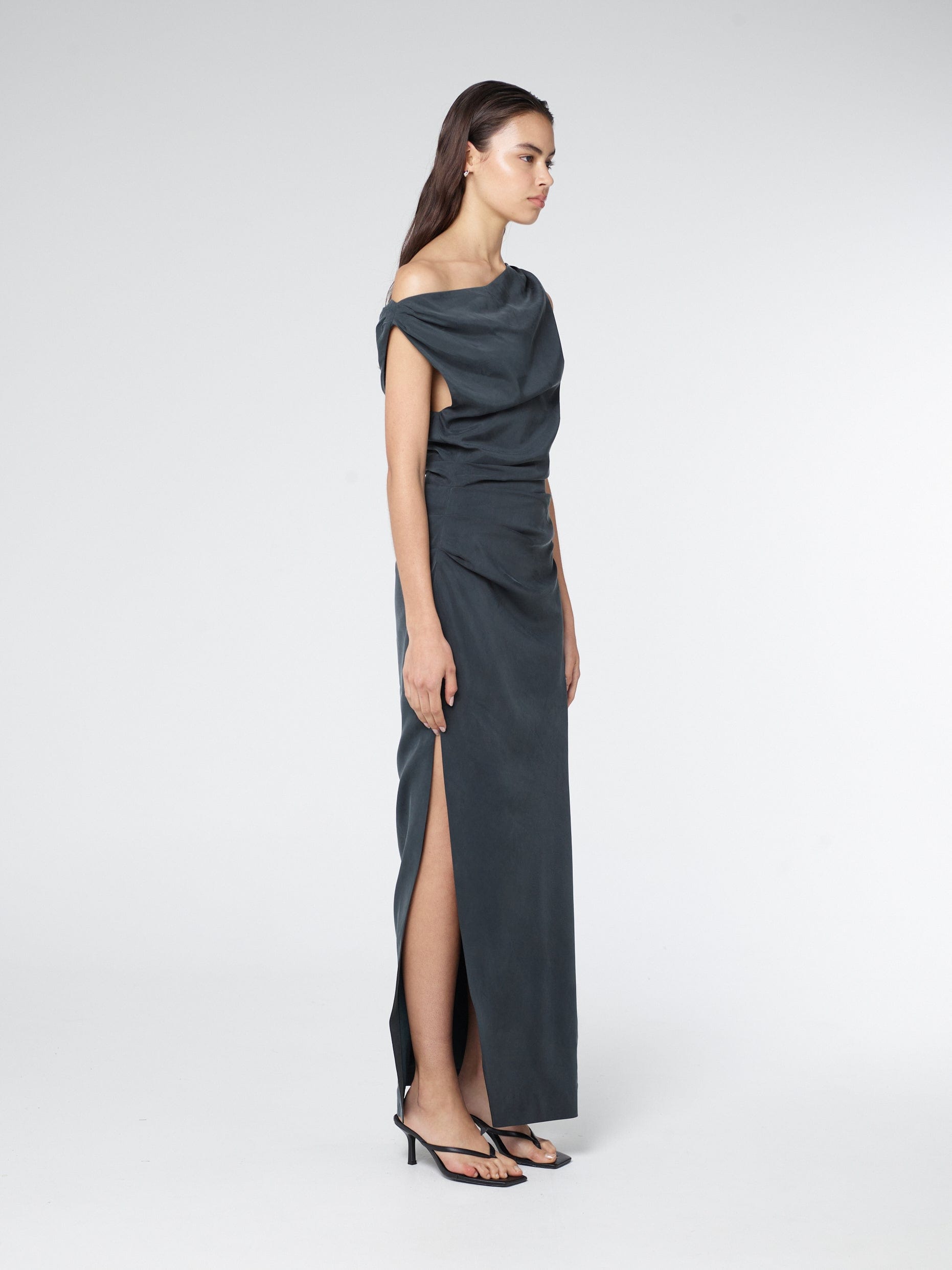 ATHENA OFF SHOULDER MAXI DRESS | INK