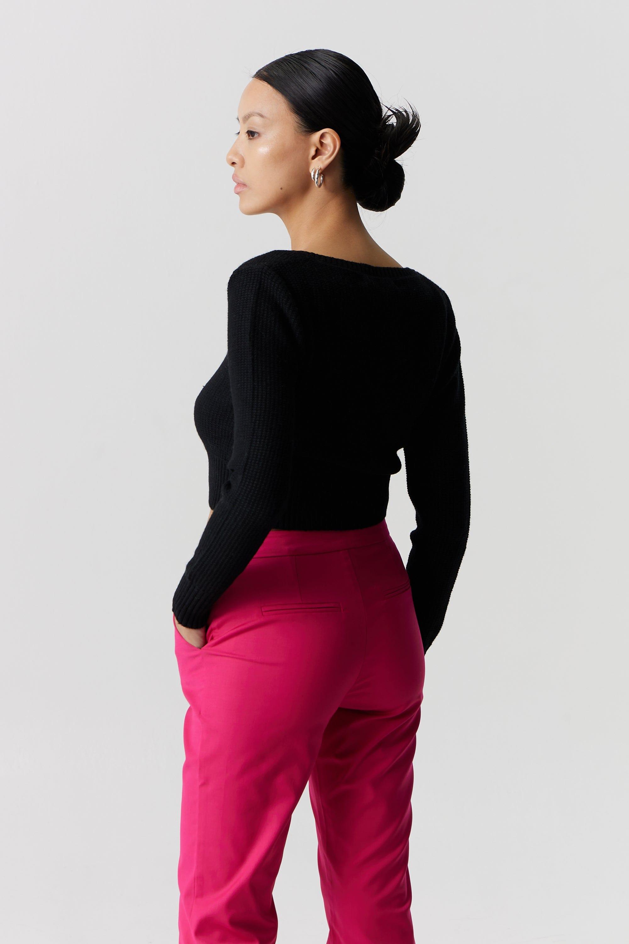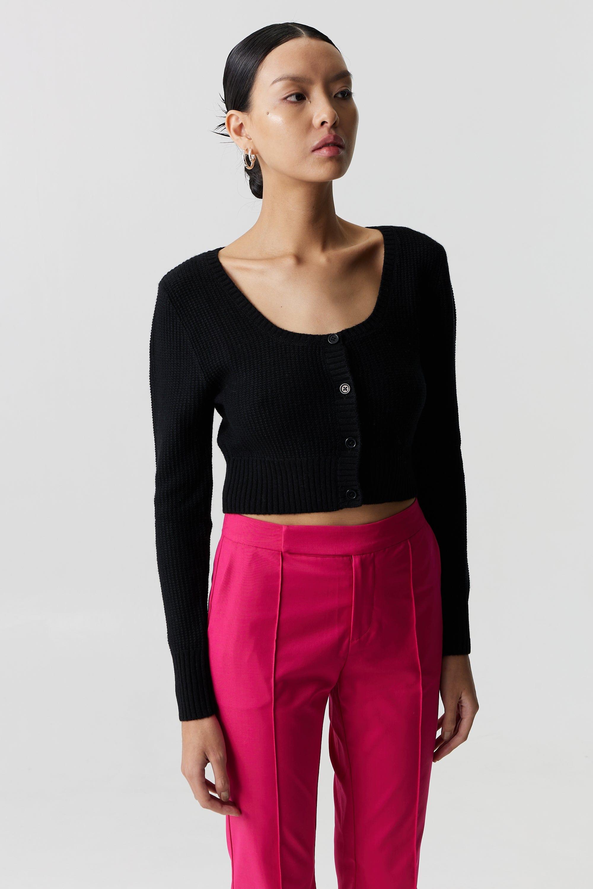 BOUCLE CROP CARDIGAN KNIT | BLACK