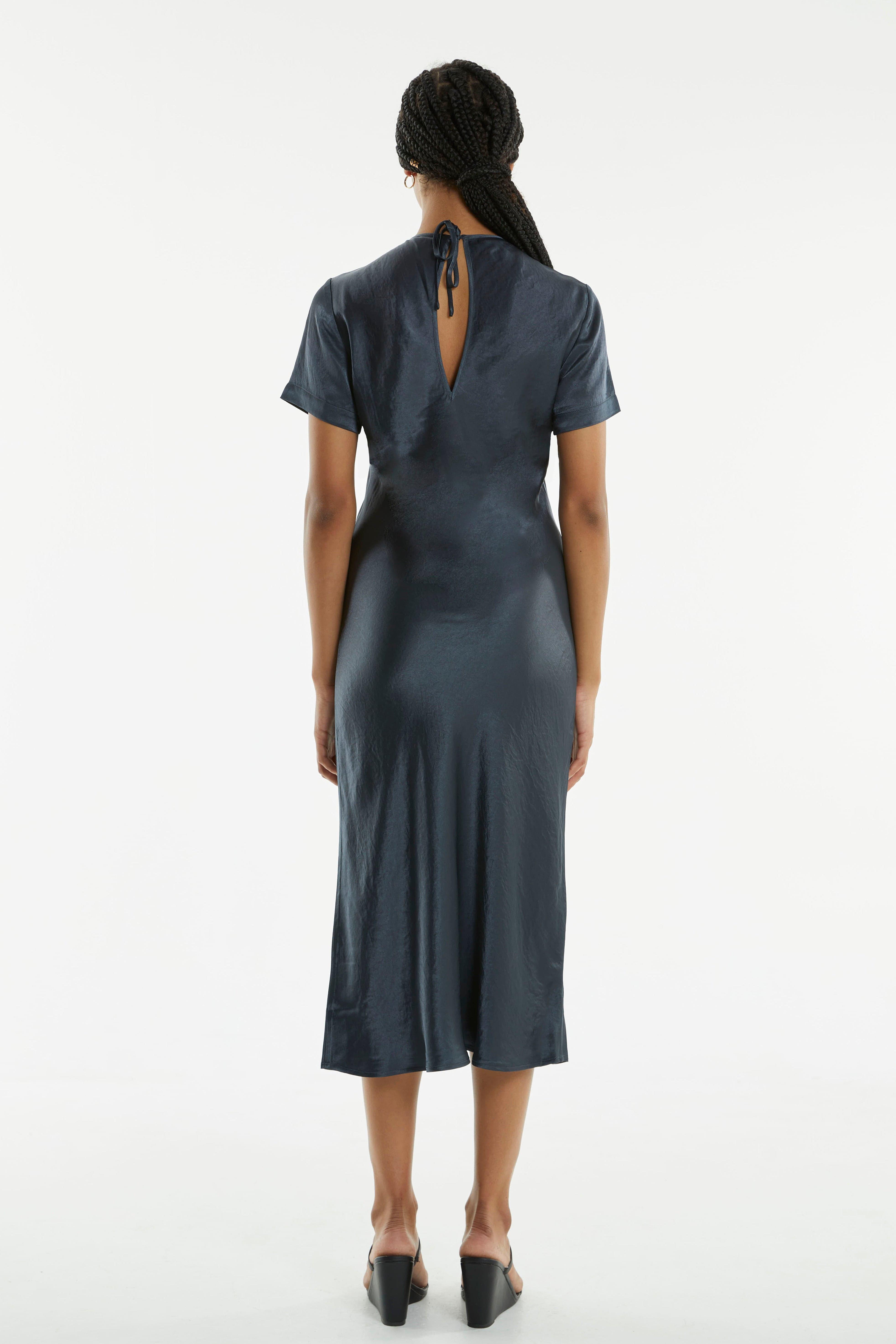 CRUSH BIAS TEE MIDI DRESS | GUN METAL