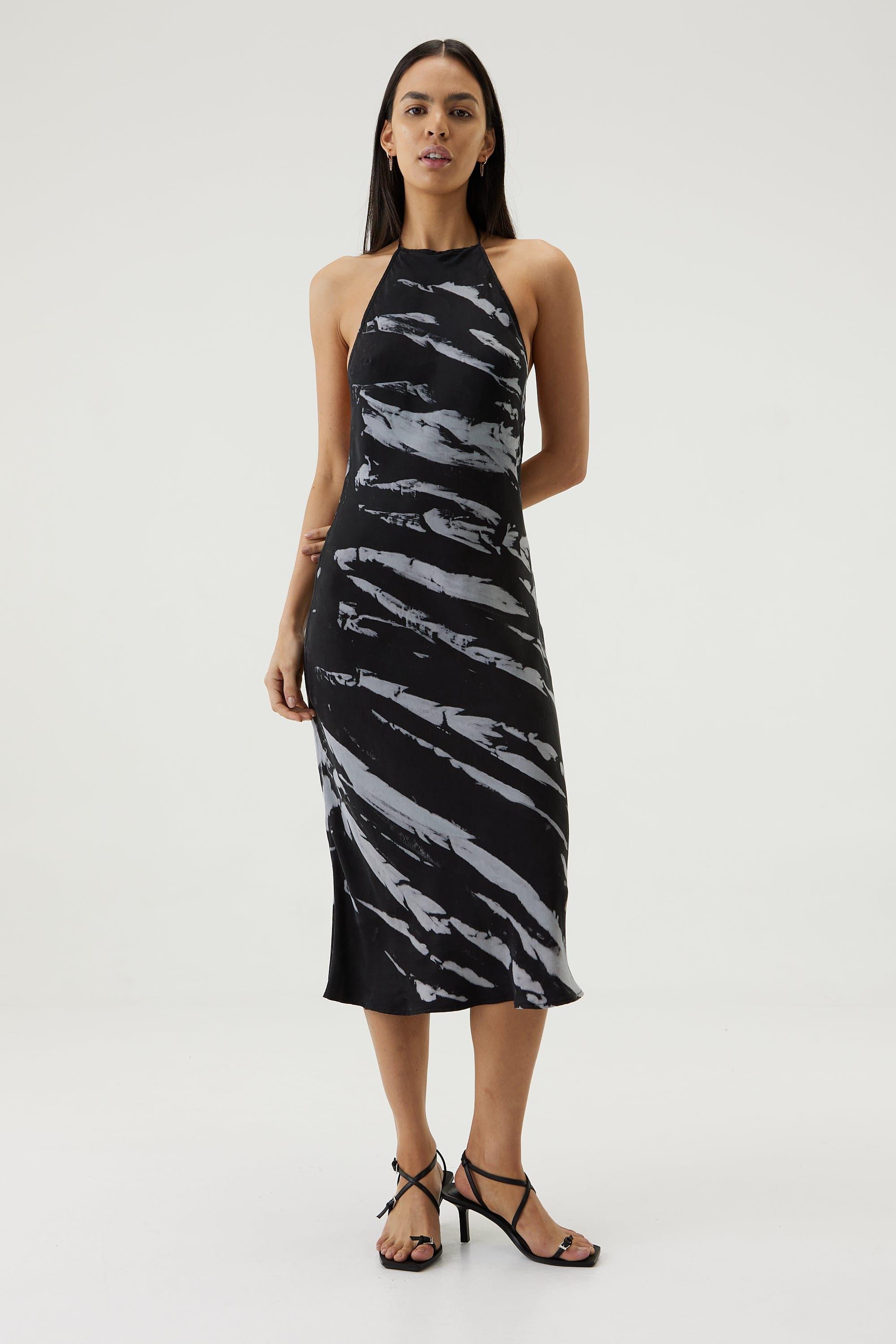 • TWIST THROUGH BIAS HALTER MIDI | BLACK TIE DYE