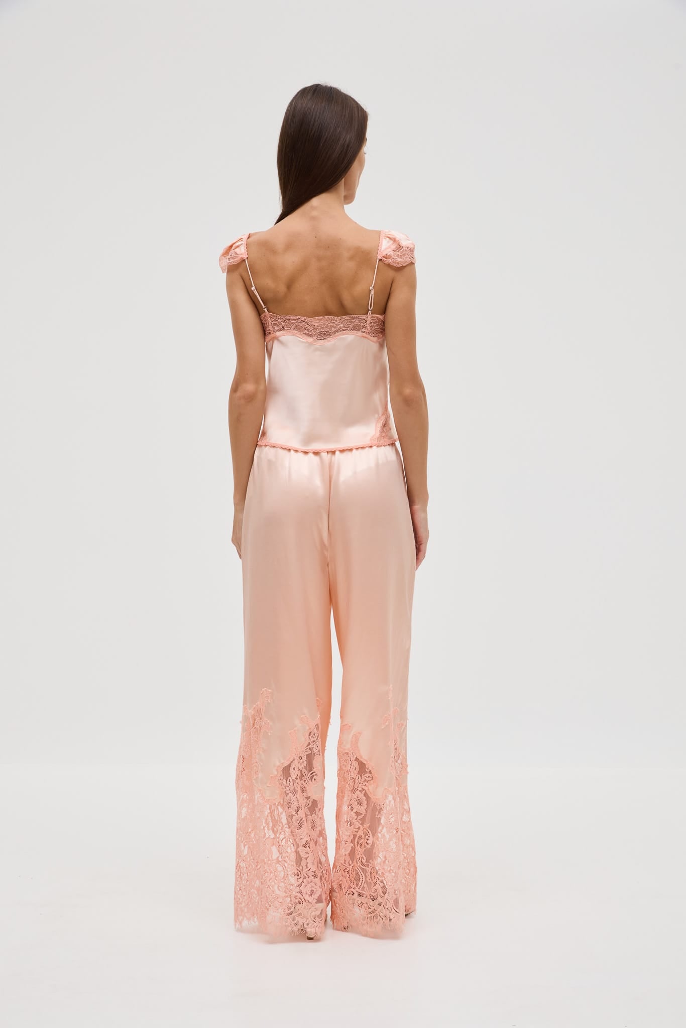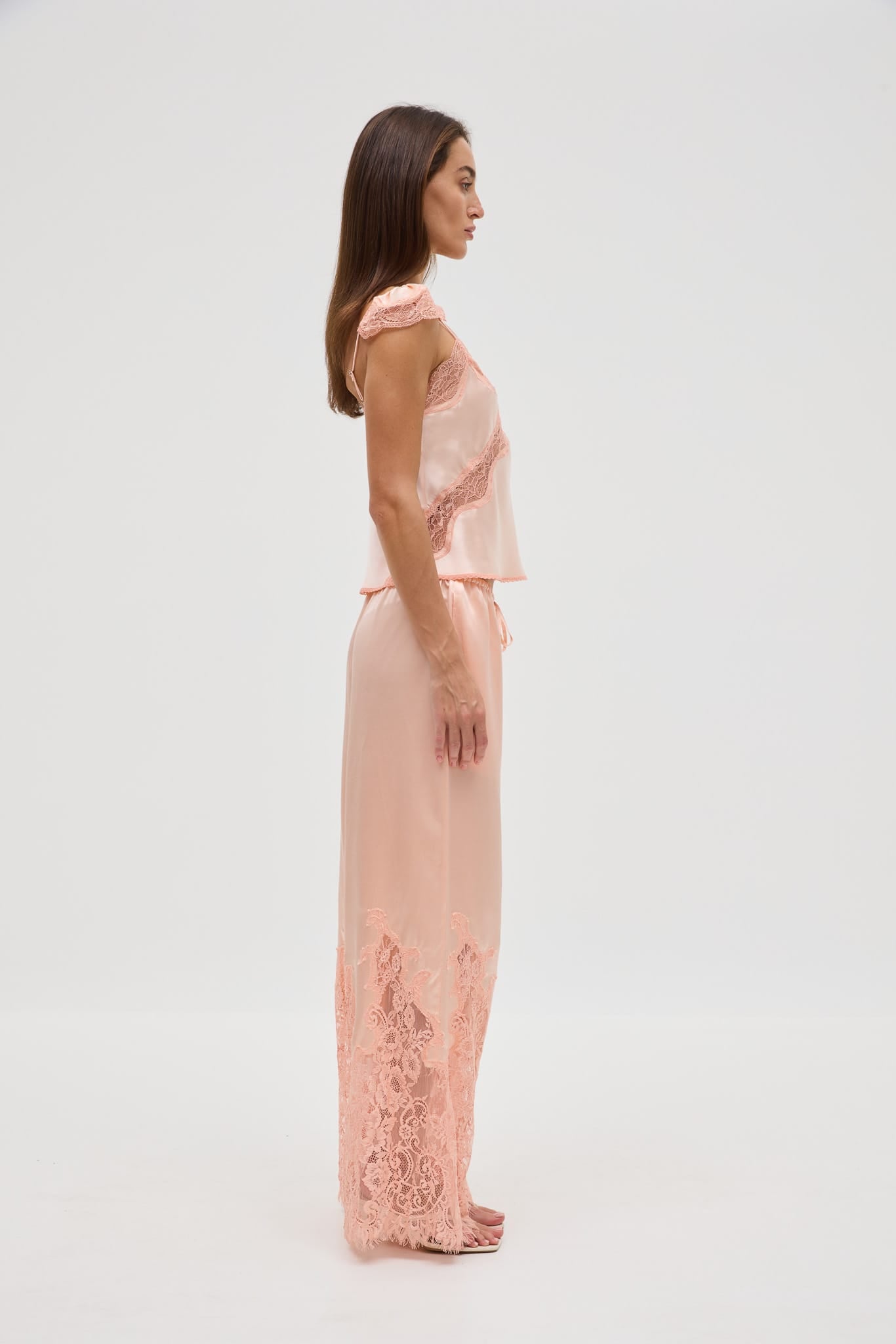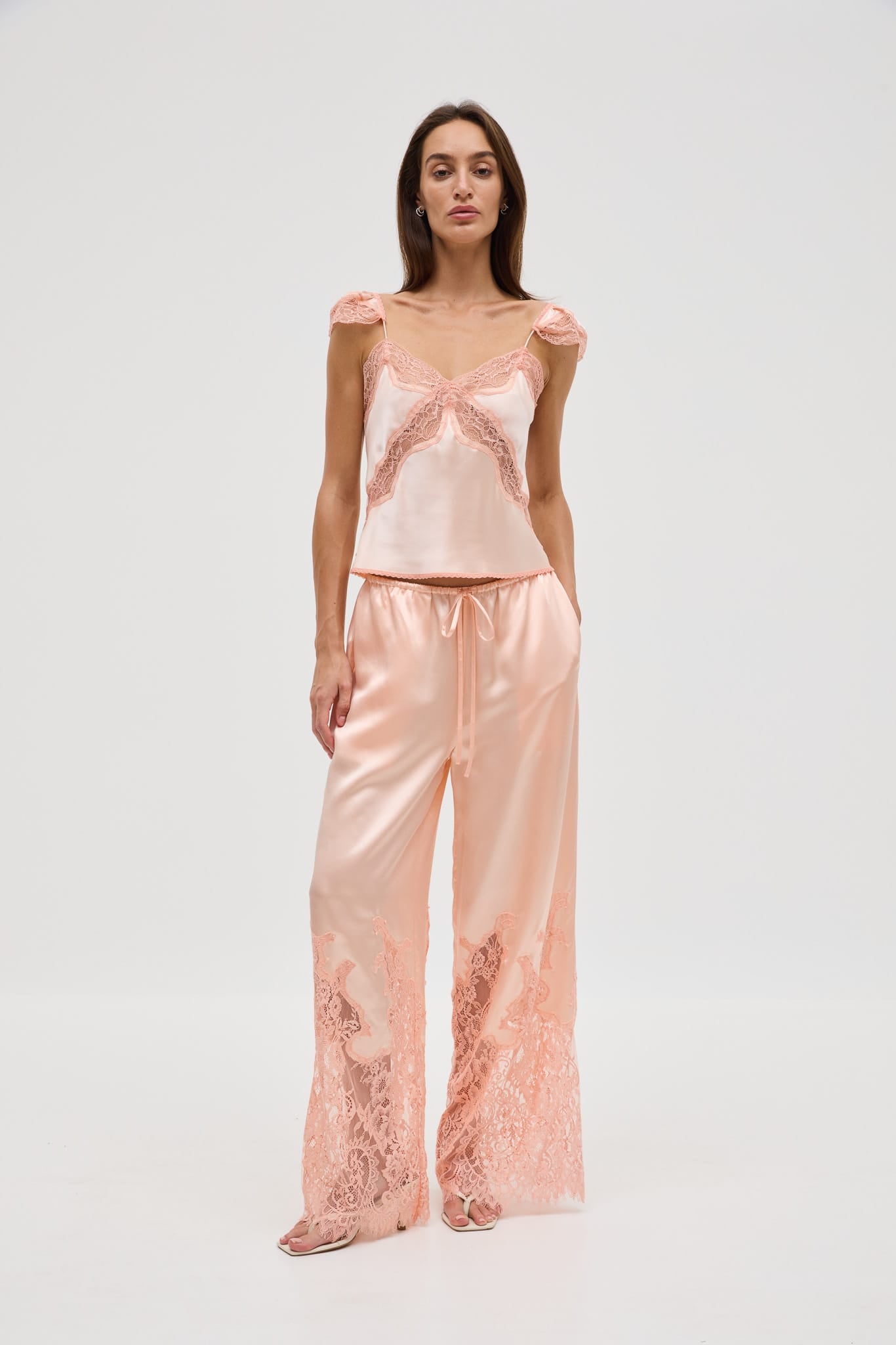 - Bias-cut camisole with lace panel detailing