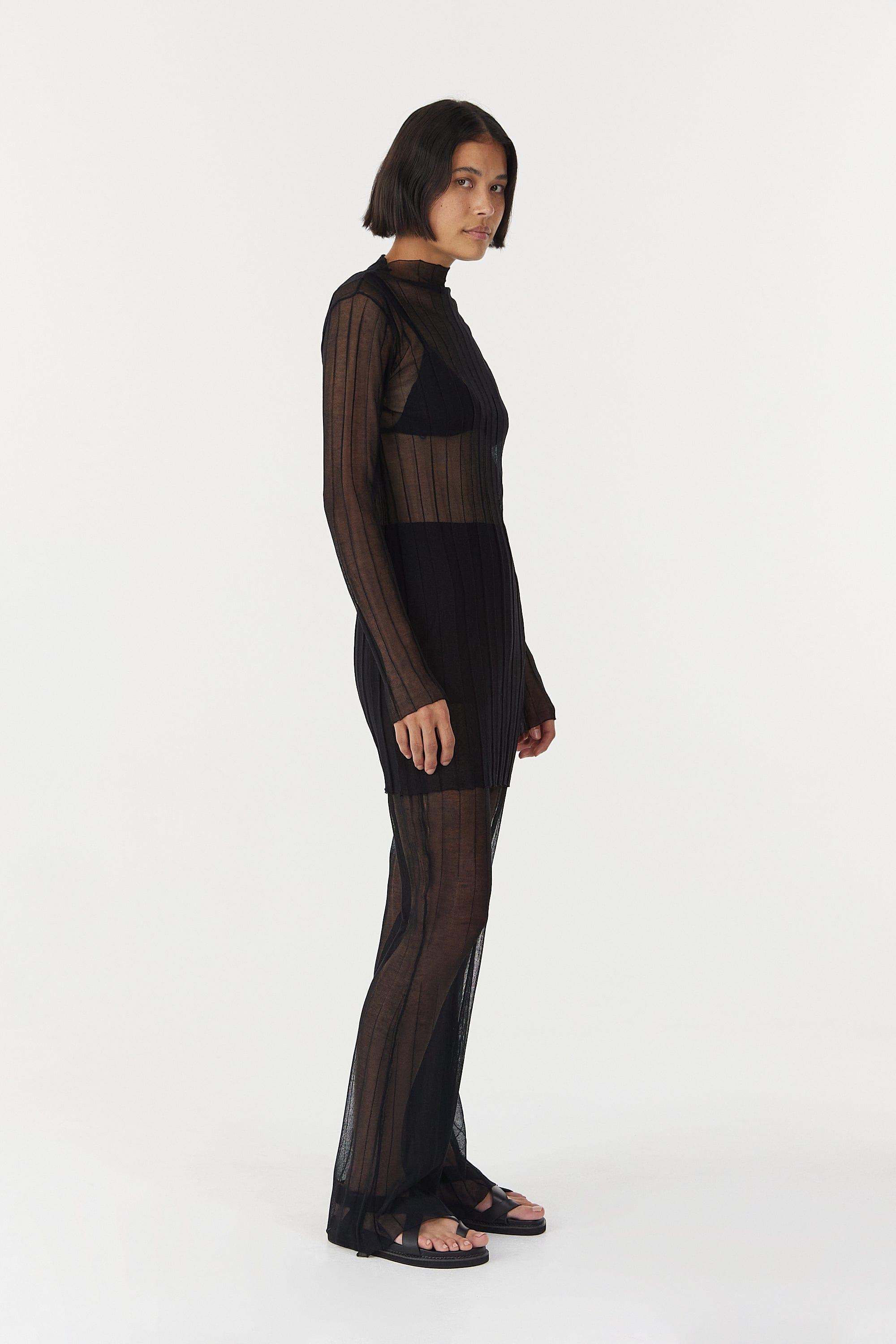 PEER THROUGH KNIT MINI DRESS | BLACK