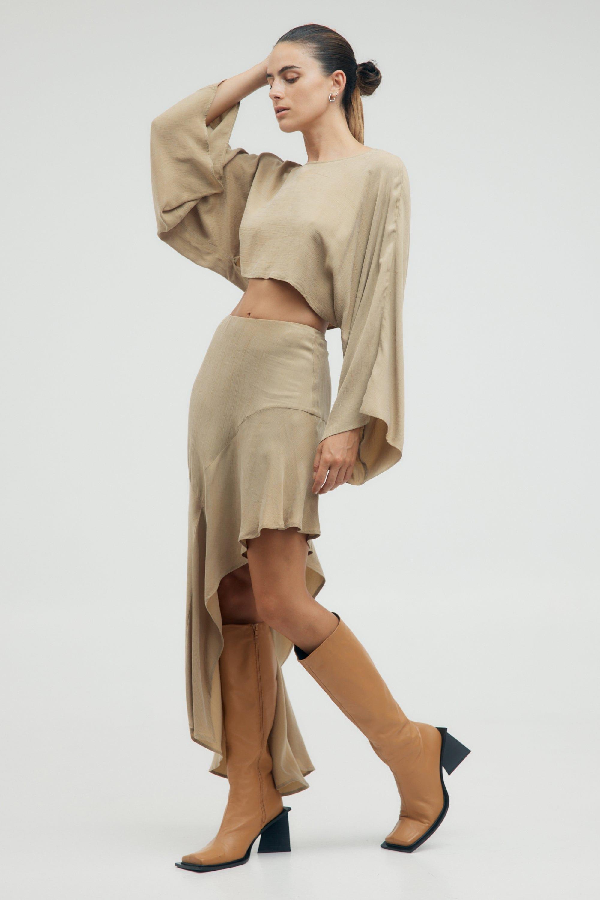 PRESSED PETALS FREE FLOW SKIRT | ALMOND