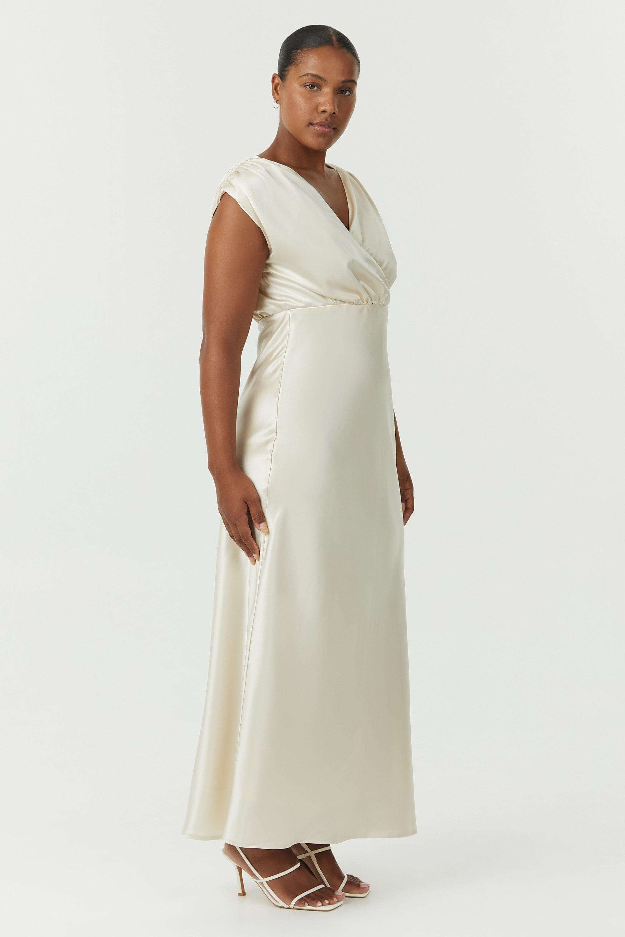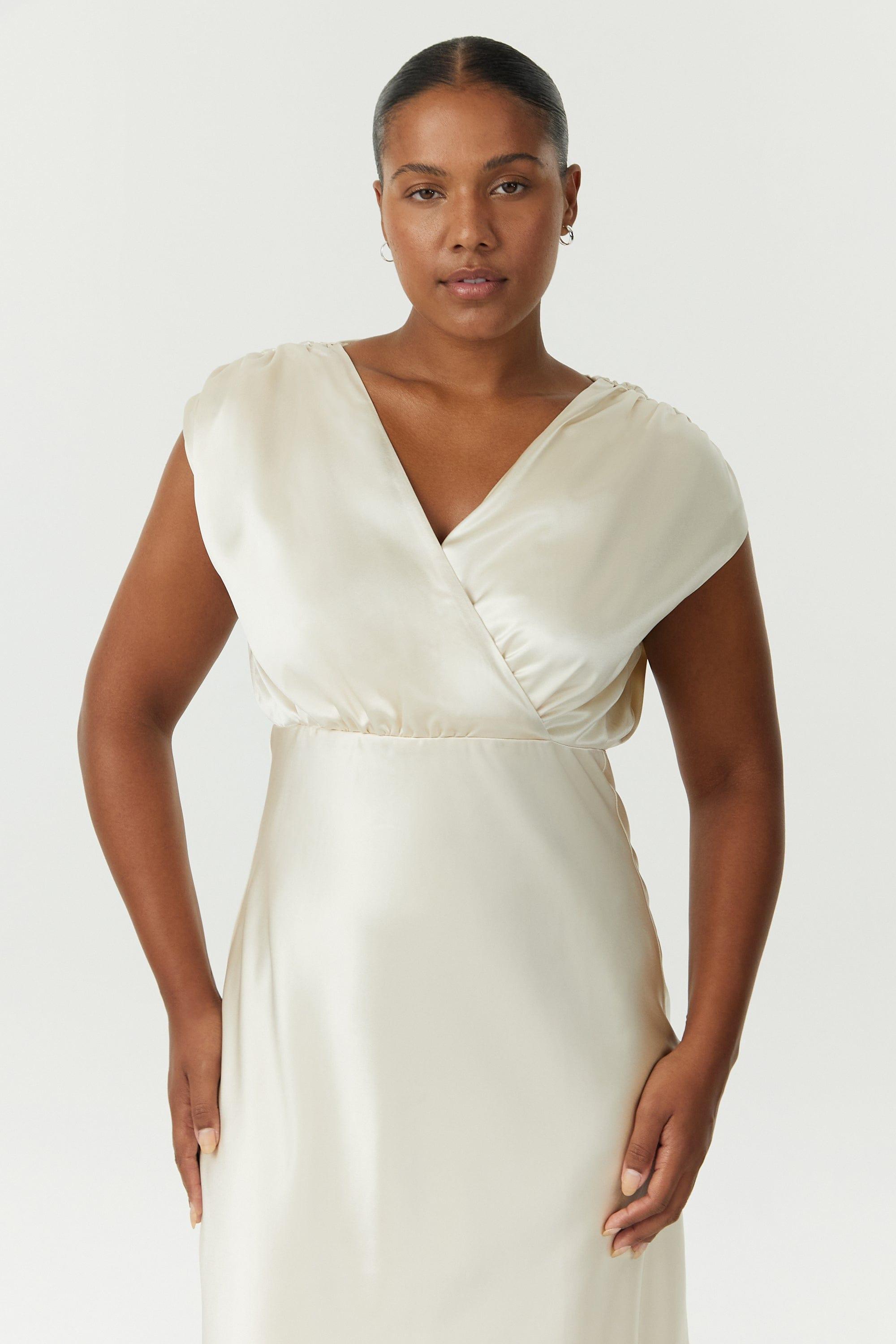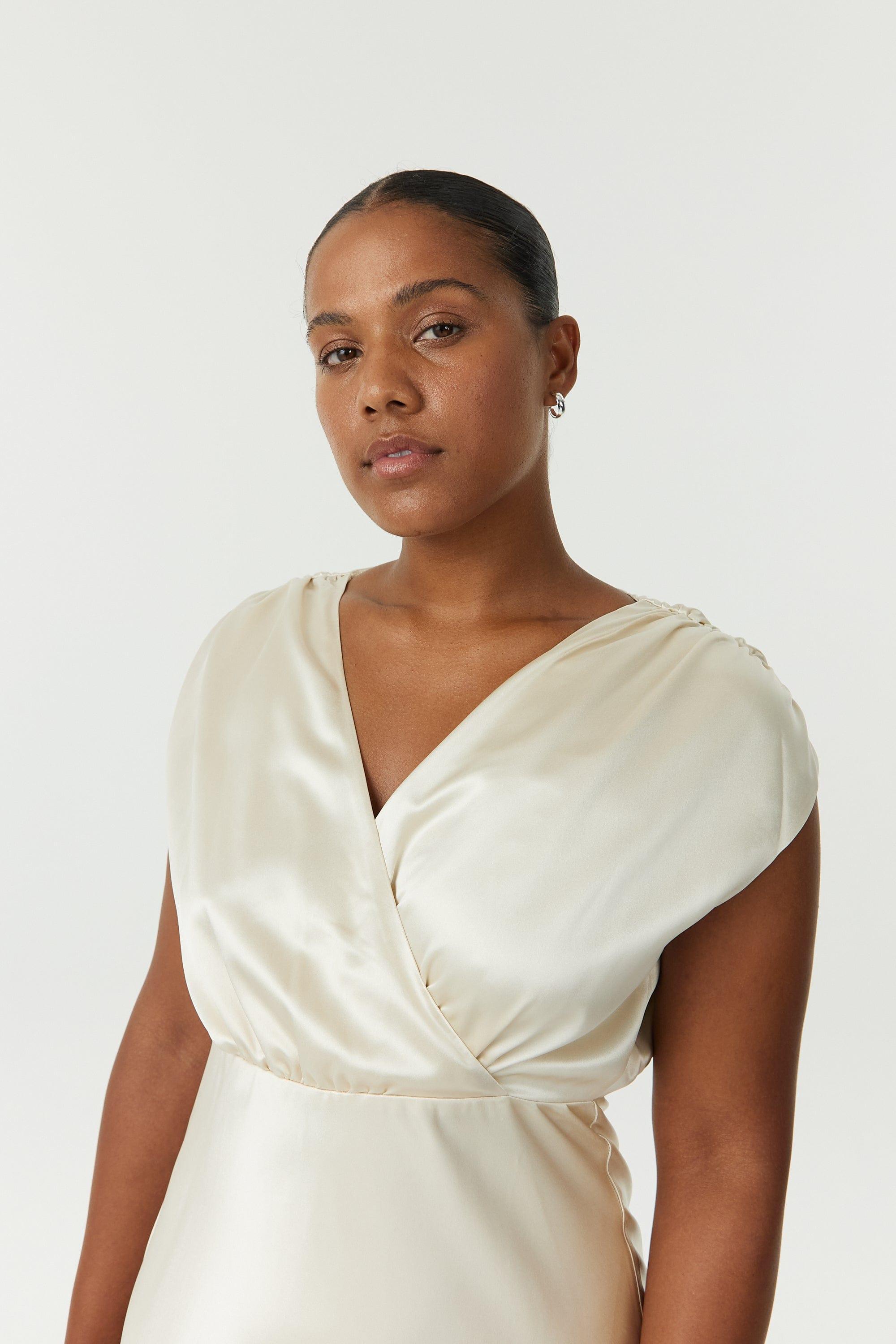 SATIN CROSS OVER GATHER DRESS | BUTTERCREAM