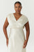 The Satin Cross Over Gather Dress combines sophistication with a modern edge. This maxi-length gown features a gathered V-neck crossover that elegantly shapes the silhouette, crafted from sustainable Naia™ Eastman 72% Acetate fabric for a smooth, satin-like finish. A subtle back keyhole detail and an invisible back zipper complete the look with understated allure. Perfect for formal occasions, this dress is an effortless choice for bridesmaids, brides, or guests.
