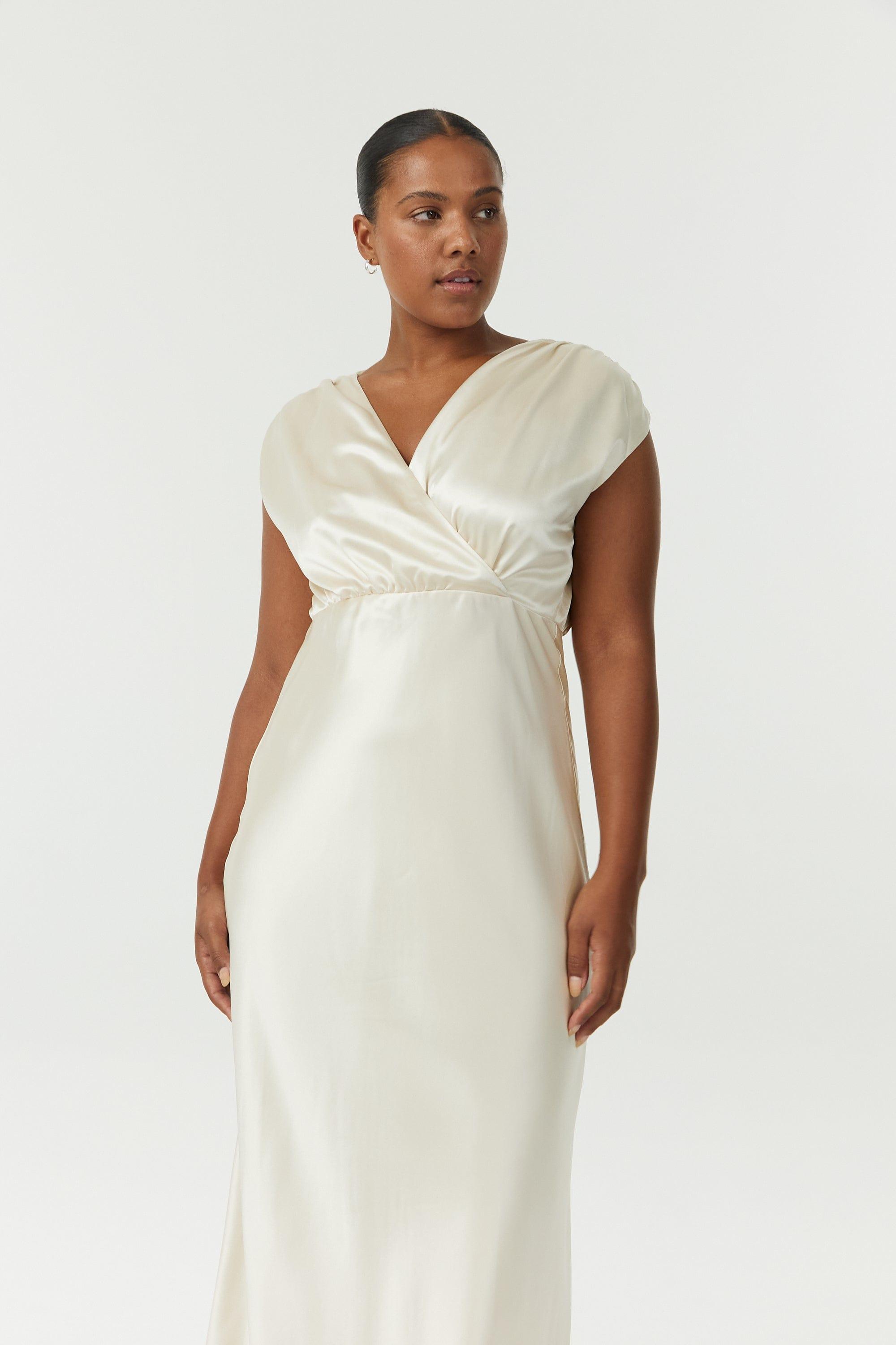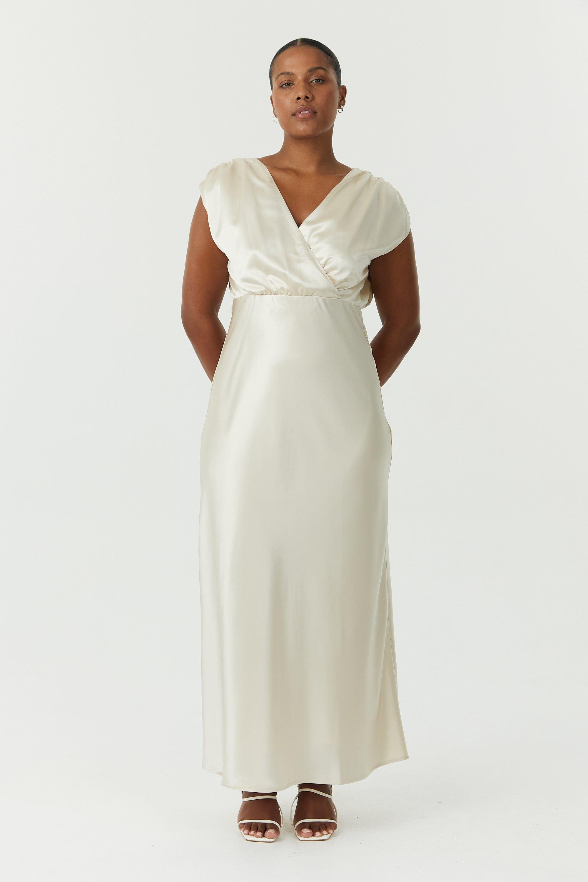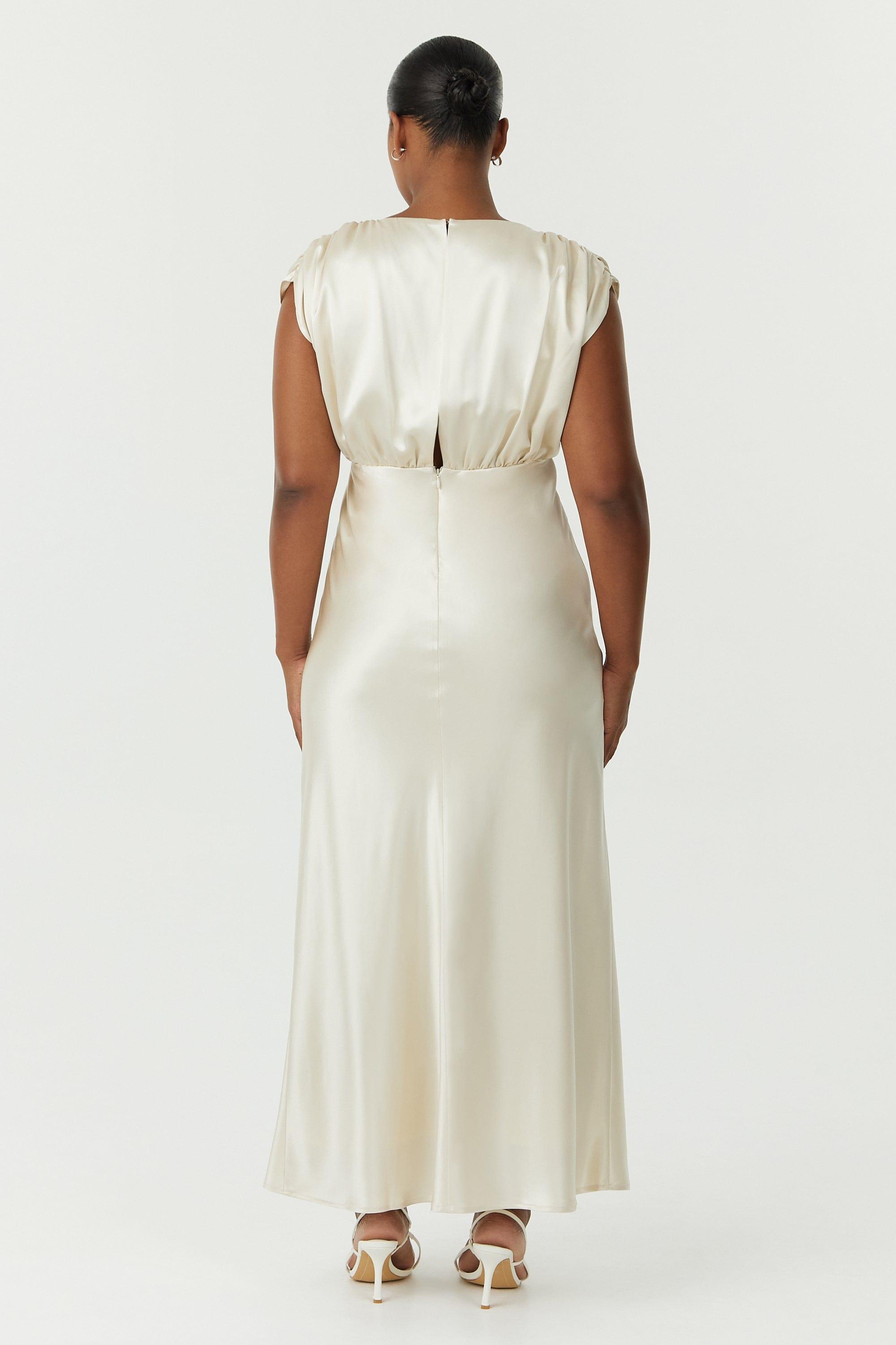 • SATIN BIAS COWL BACK MAXI | BUTTERCREAM