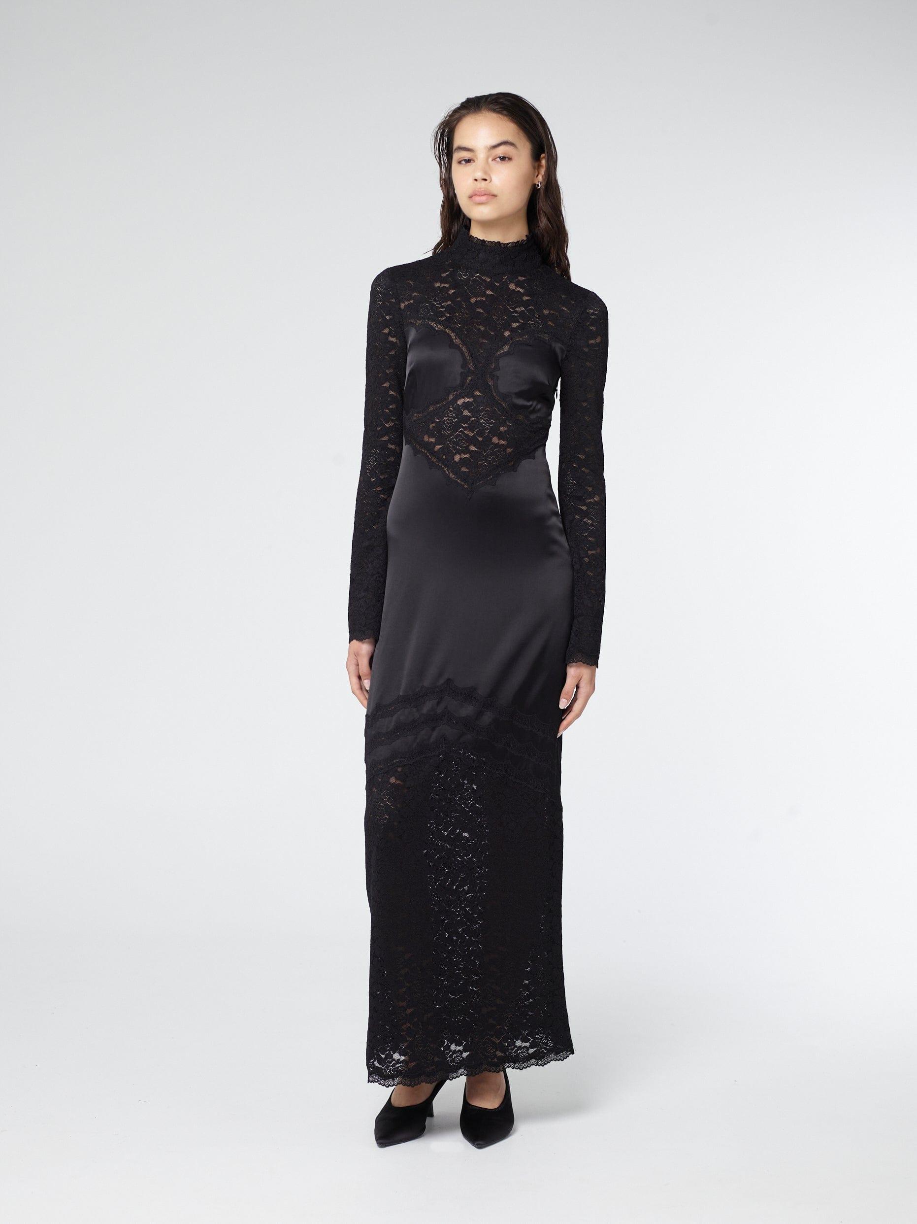 SERENADE LACE LONG SLEEVE DRESS | BLACK