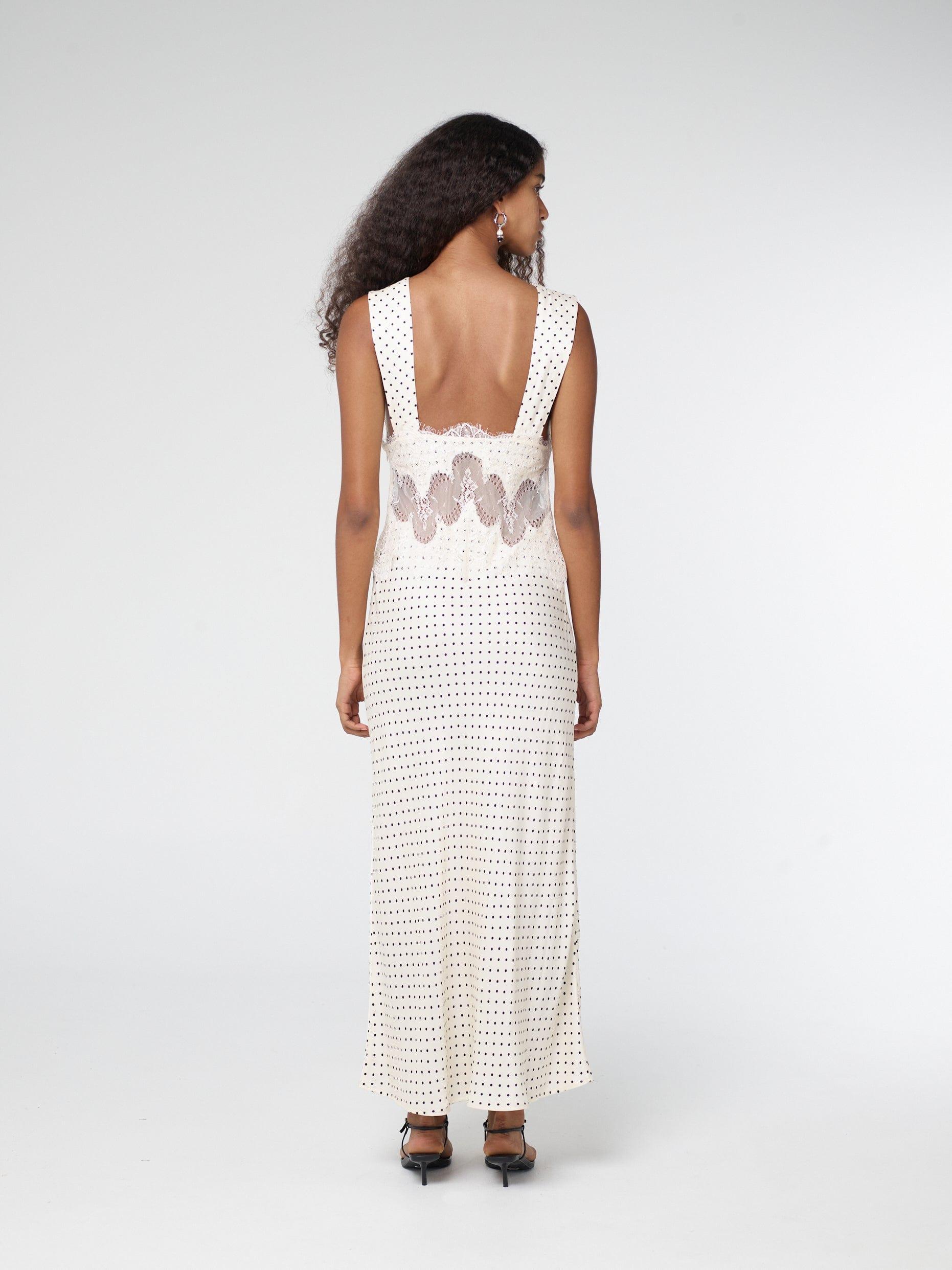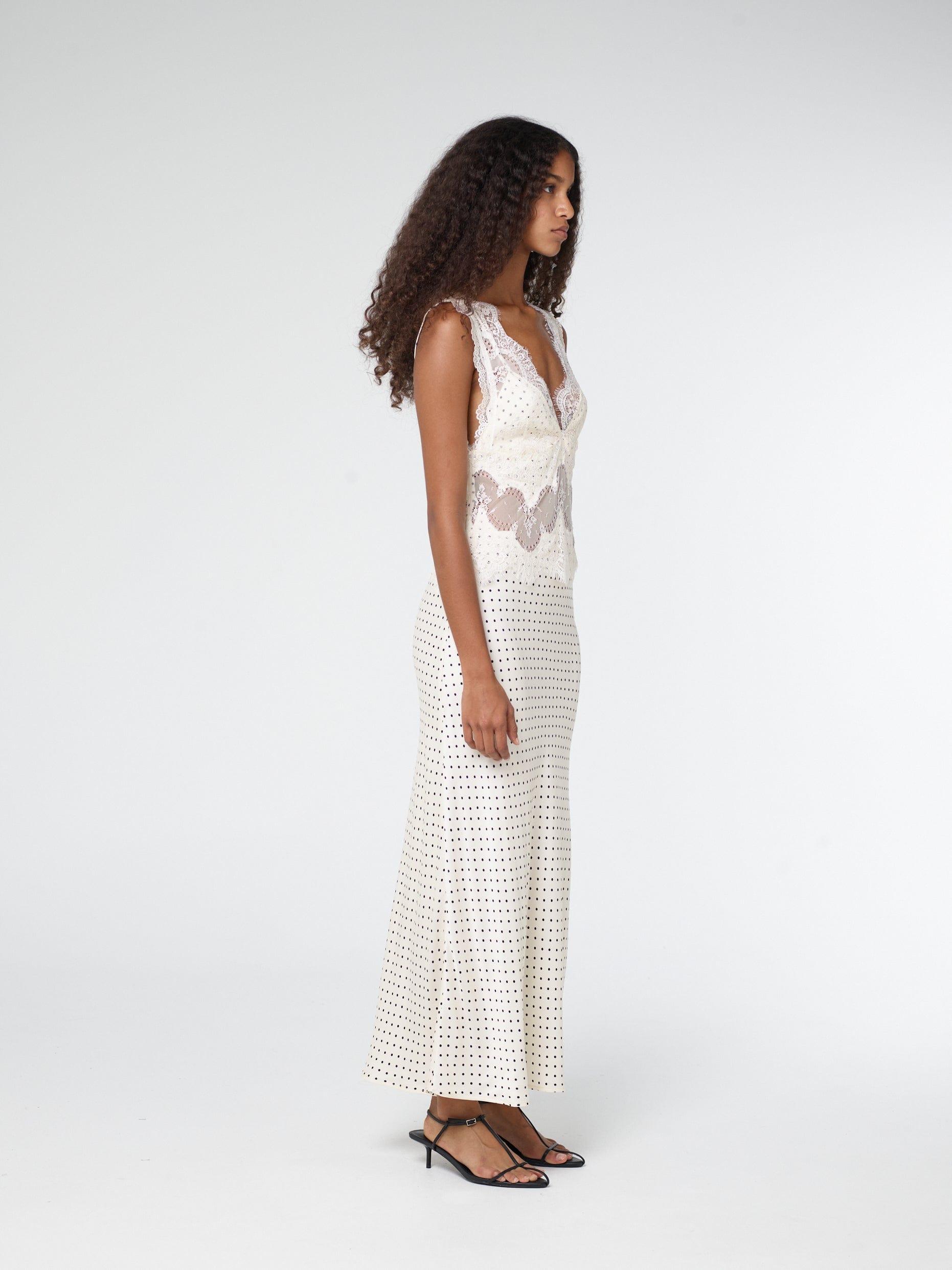 VISIONS LACE DEEP V MAXI DRESS | CREAM POLKA DOT