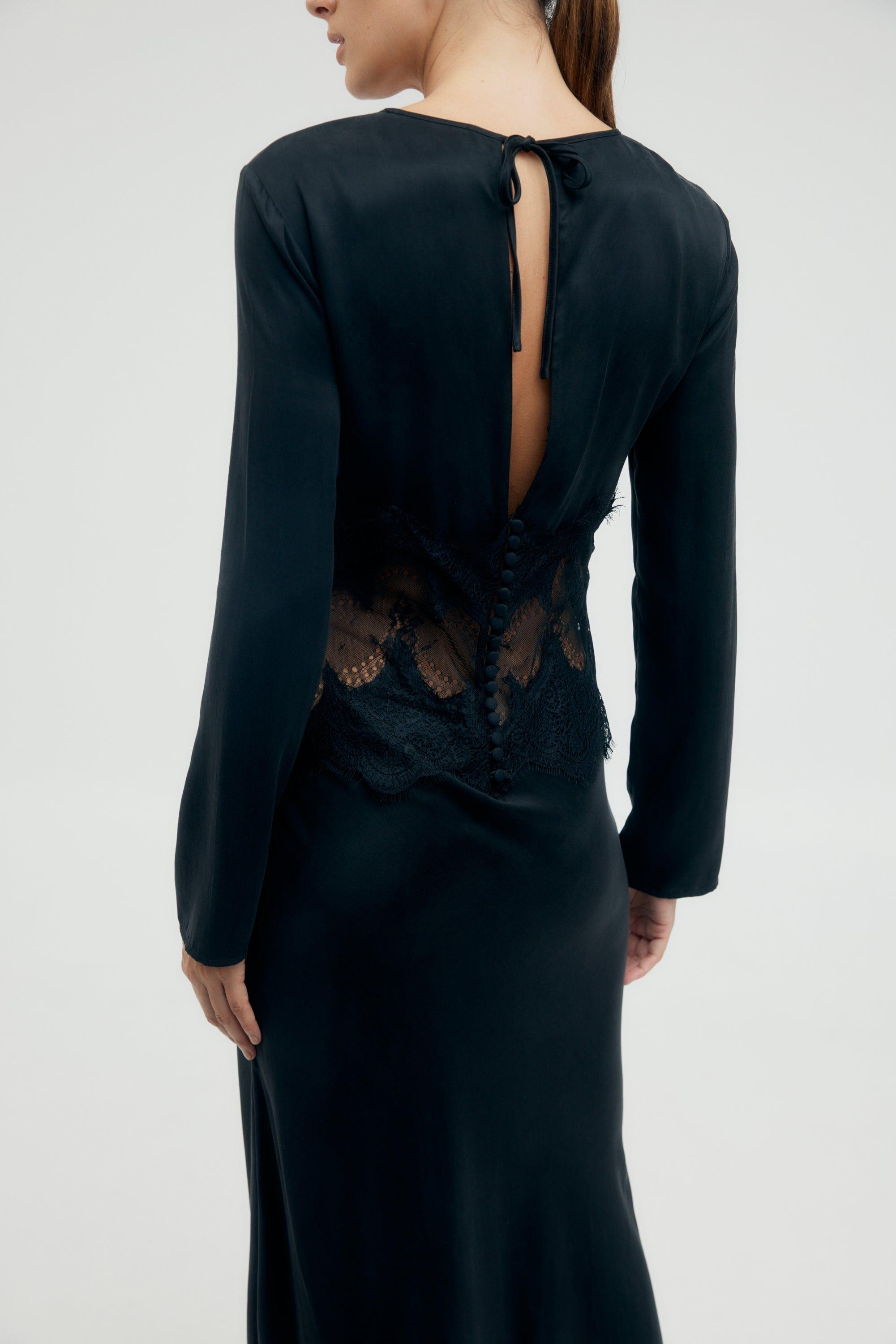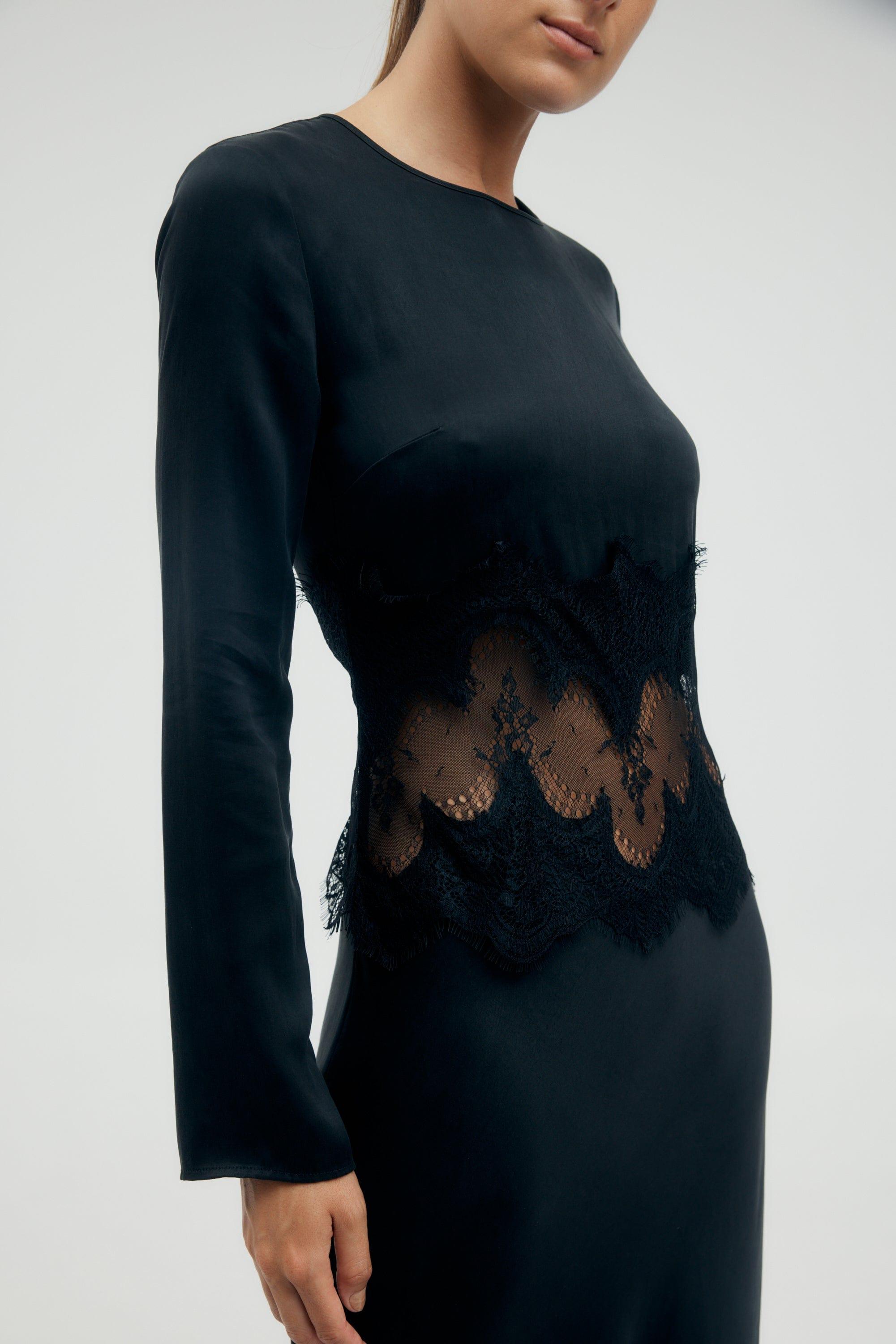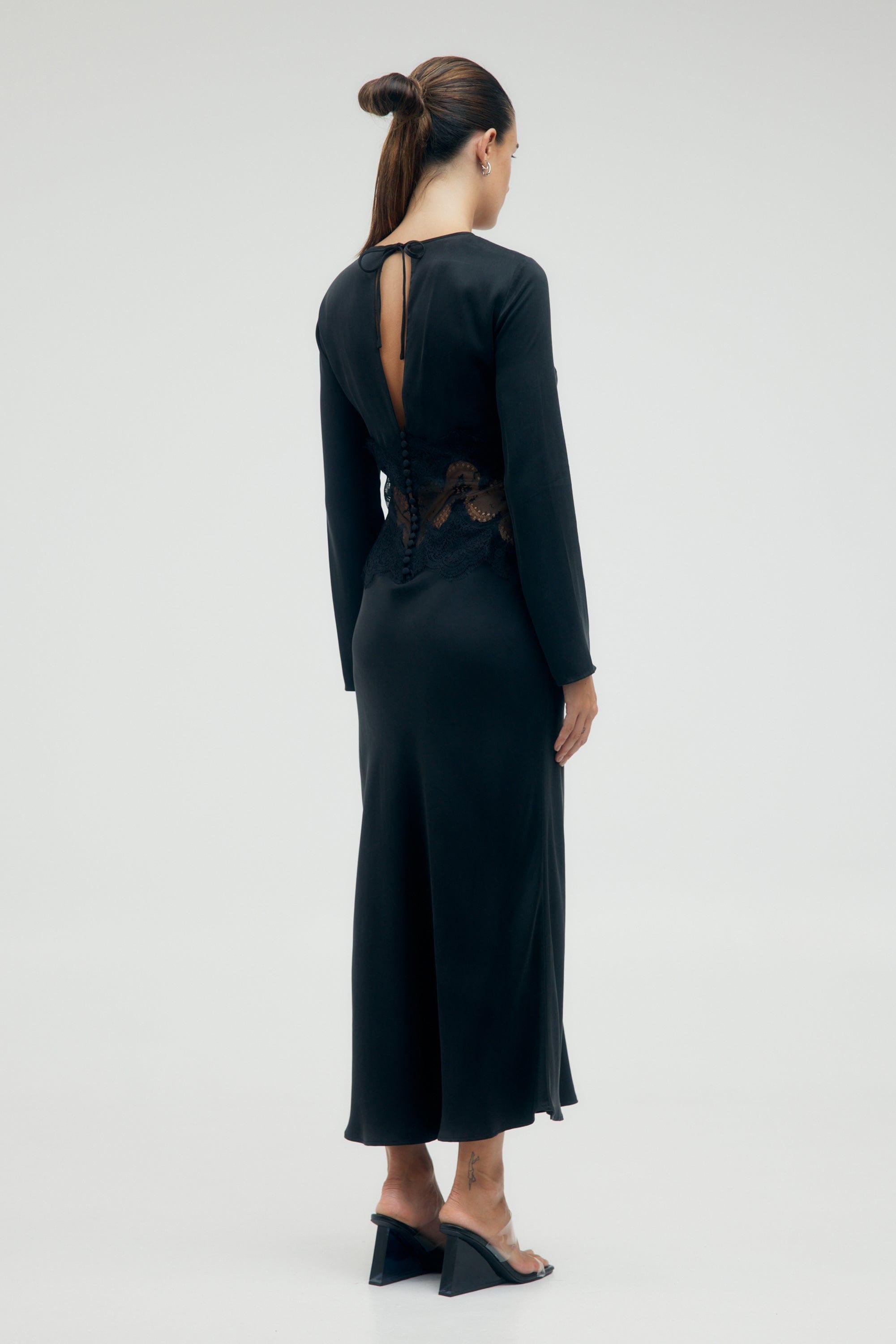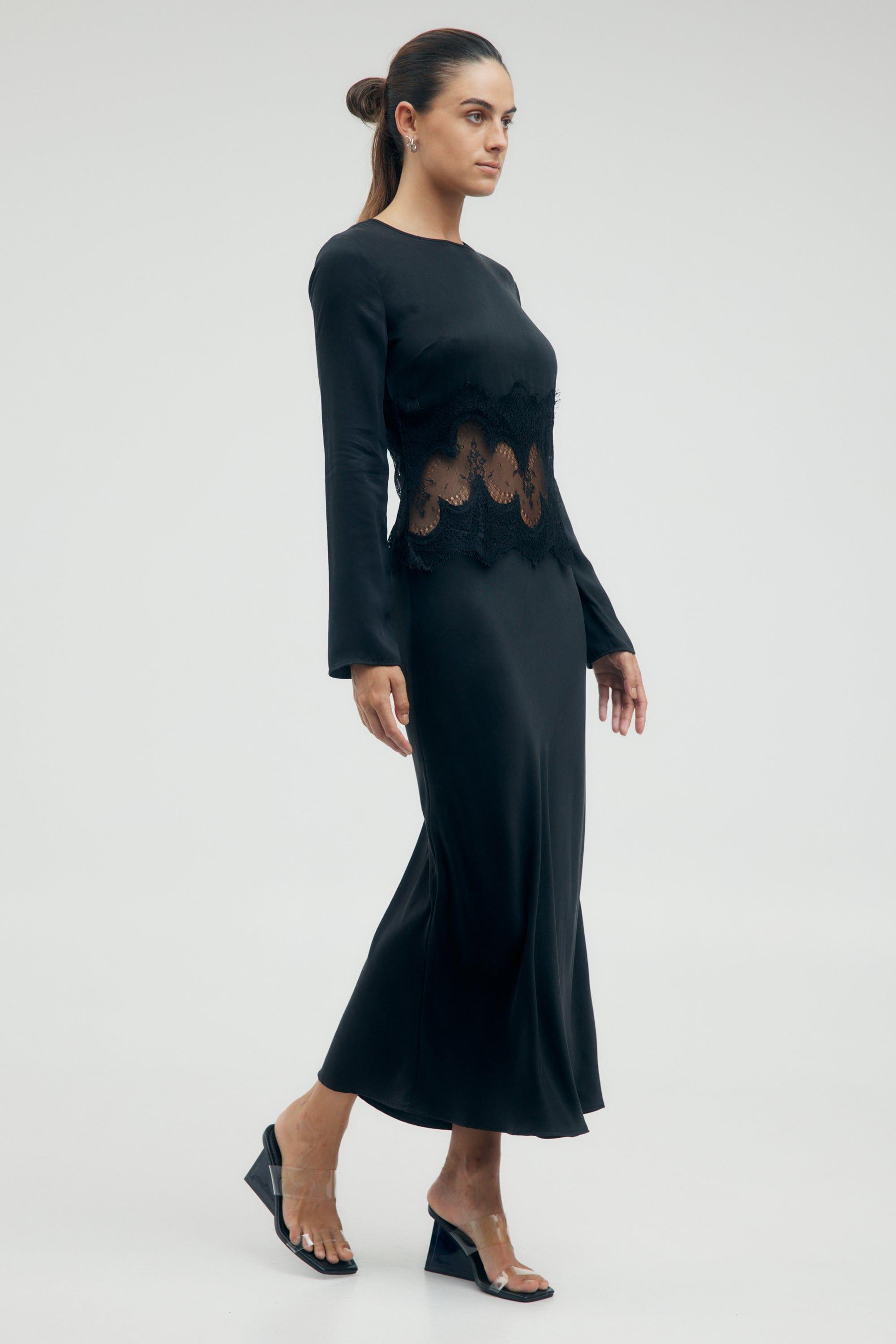 VISIONS LACE TRIM LS MAXI DRESS | EBONY