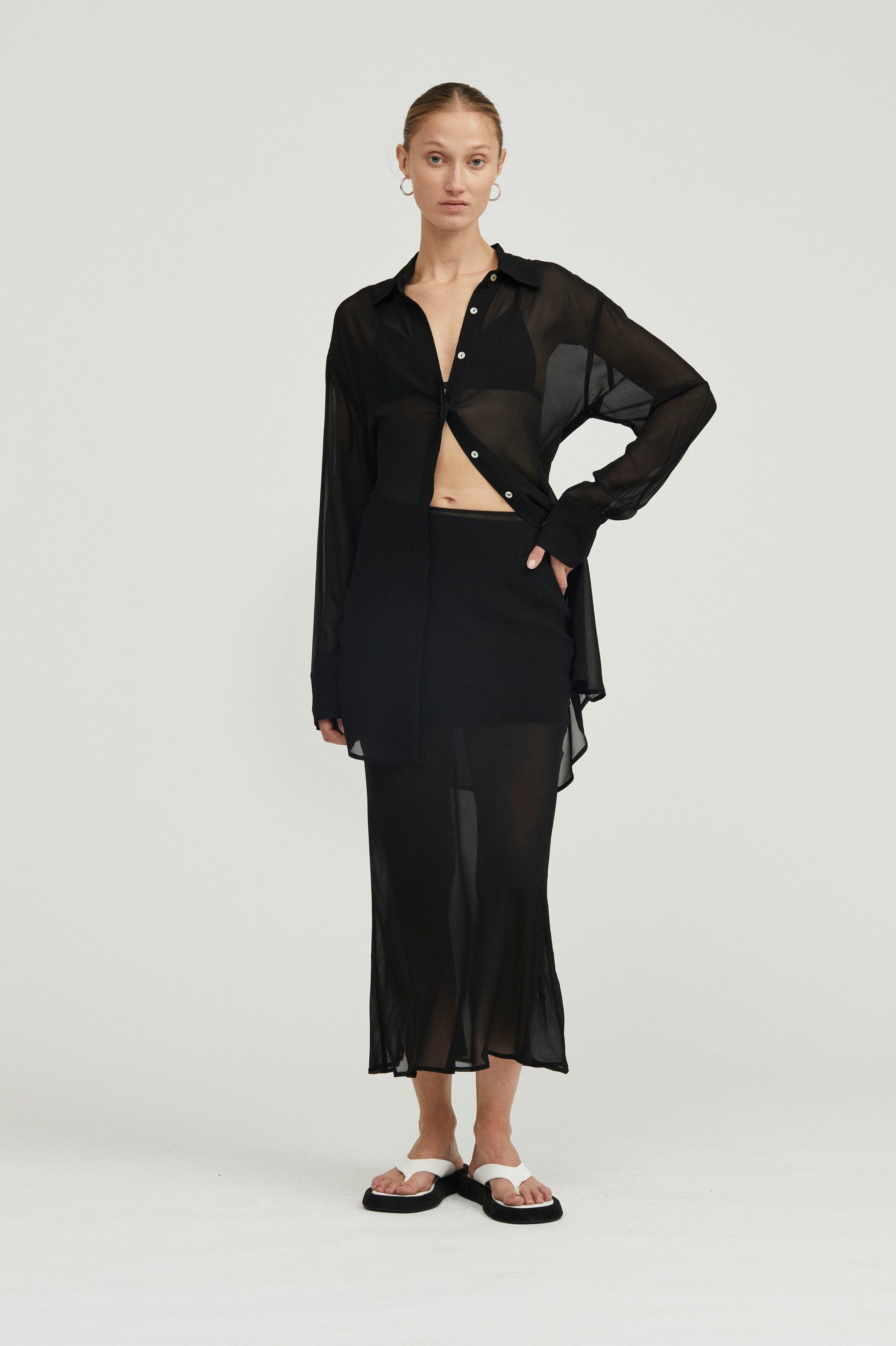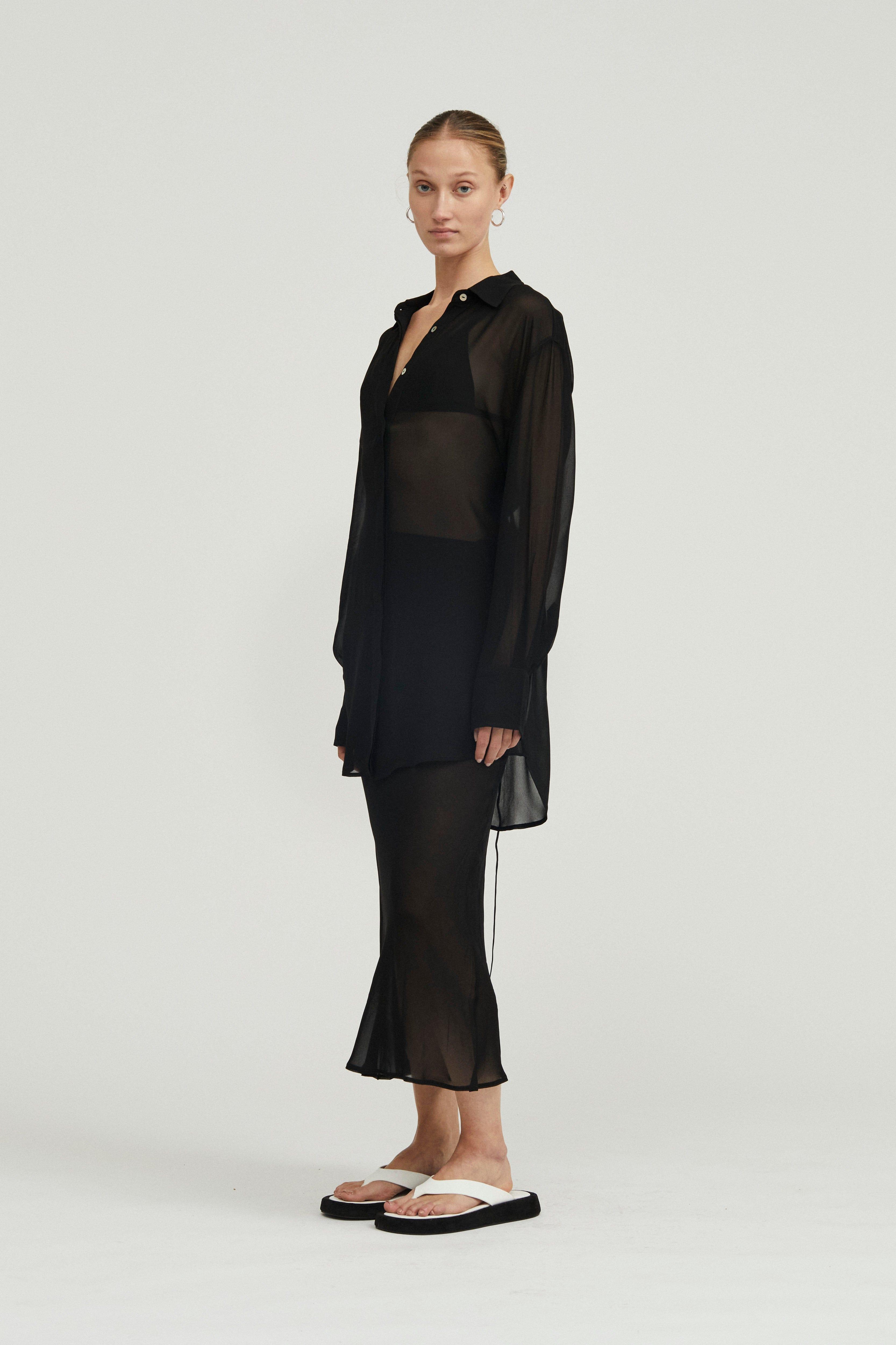 WISTERIA SHEER SHIRT DRESS | BLACK